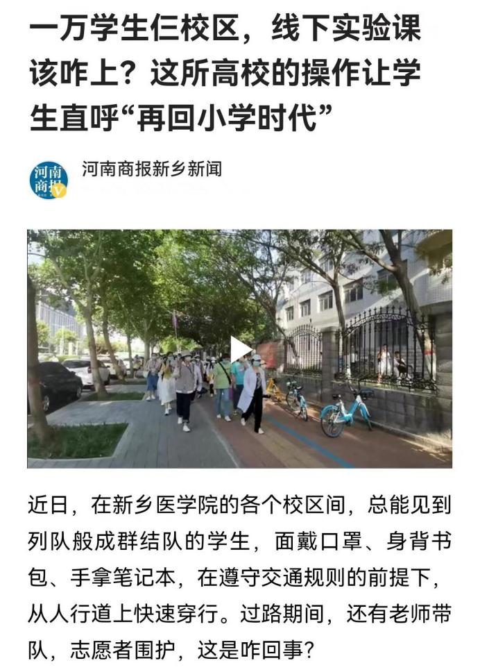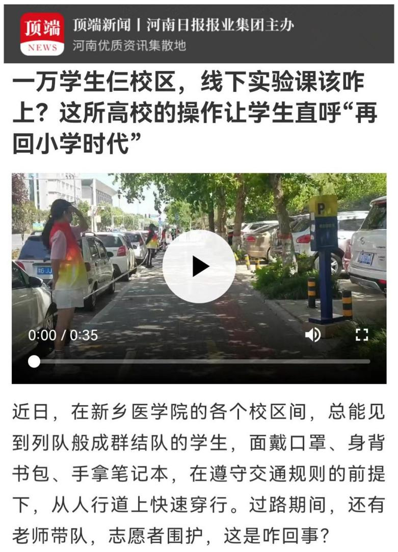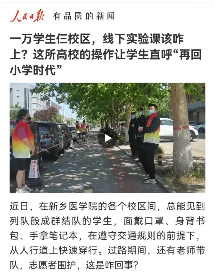 近段时间,我校因开展线下实验课教学,万余名学子需在三个校区间穿行,为保障安全,四百余名老师及志愿者带队、围护,浩浩荡荡且秩序井然,充分体现学校教学质量与学子安全两手抓两手都要硬的责任担当。多家媒体以文图、视频等形式进行报道。(供稿:刘天庆)