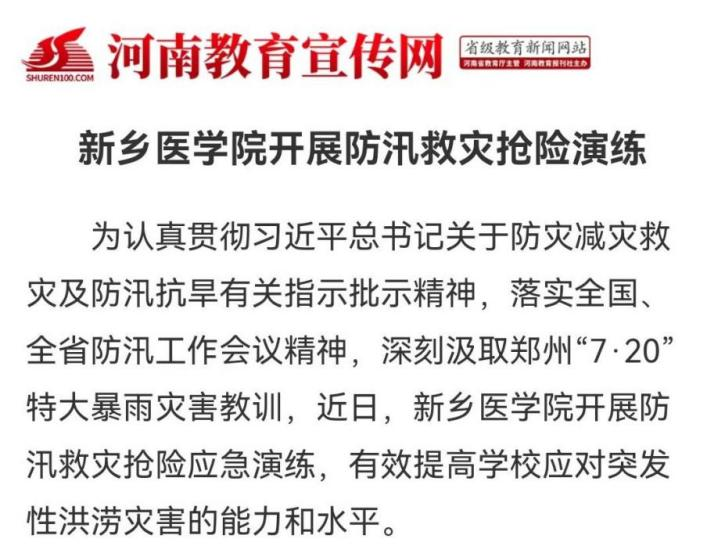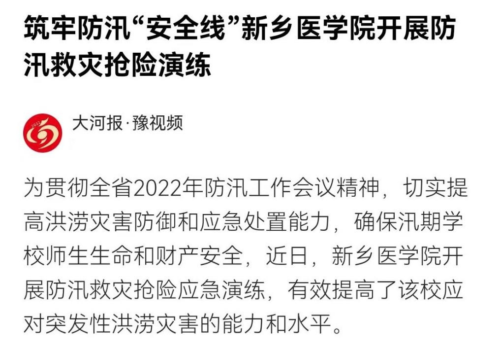 为贯彻全省2022年防汛工作会议精神,切实提高洪涝灾害防御和应急处置能力,确保汛期学校师生生命和财产安全,7月11日,我校开展防汛救灾抢险应急演练,有效提高了该校应对突发性洪涝灾害的能力和水平。多家媒体报道。(供稿:刘天庆)