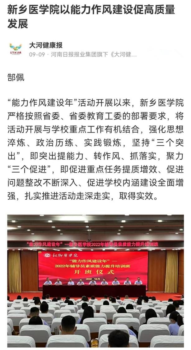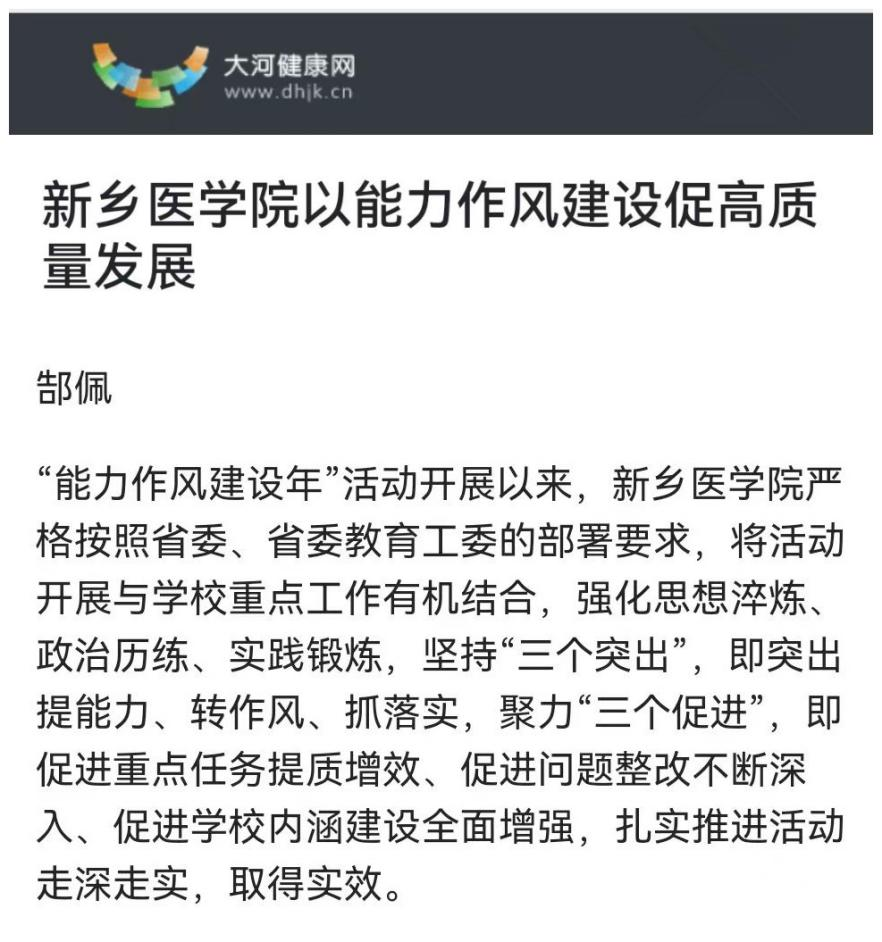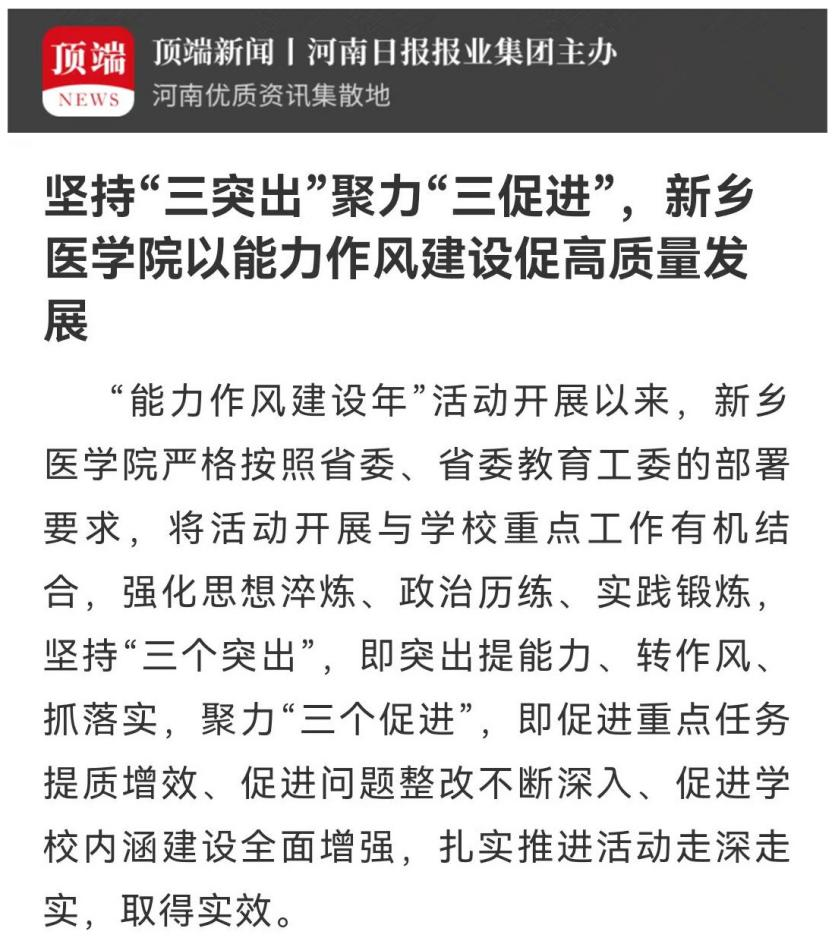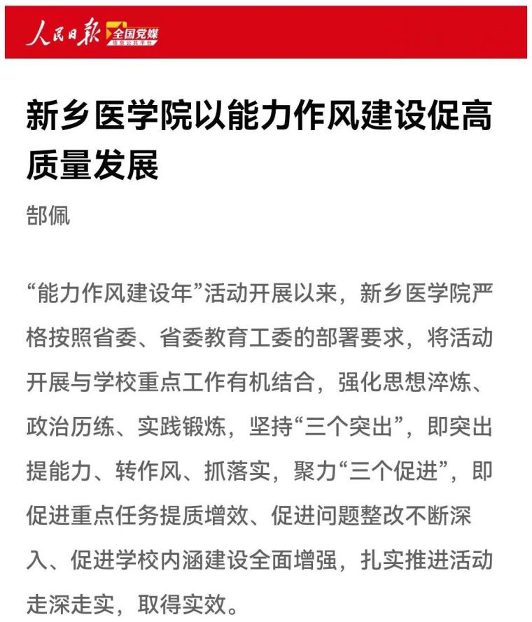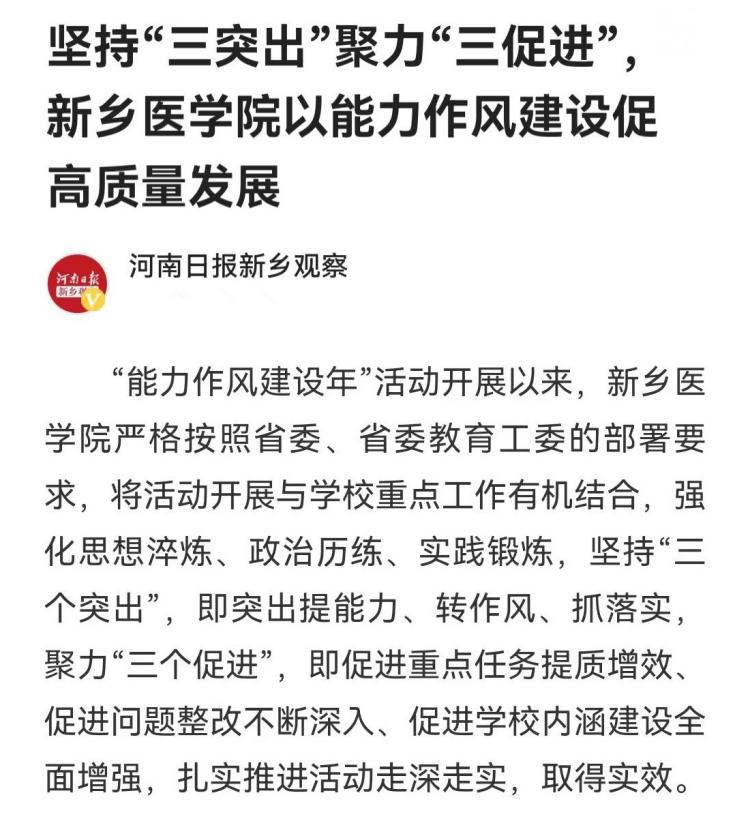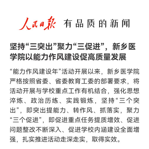 “能力作风建设年”活动开展以来,我校将活动开展与学校重点工作有机结合,强化思想淬炼、政治历练、实践锻炼。人民日报客户端等多家权威媒体通过突出能力提升,促进重点任务提质增效;突出作风转变,促进问题整改不断深入;突出落实见效,促进内涵建设全面增强三个方面进行报道。(供稿:刘天庆)