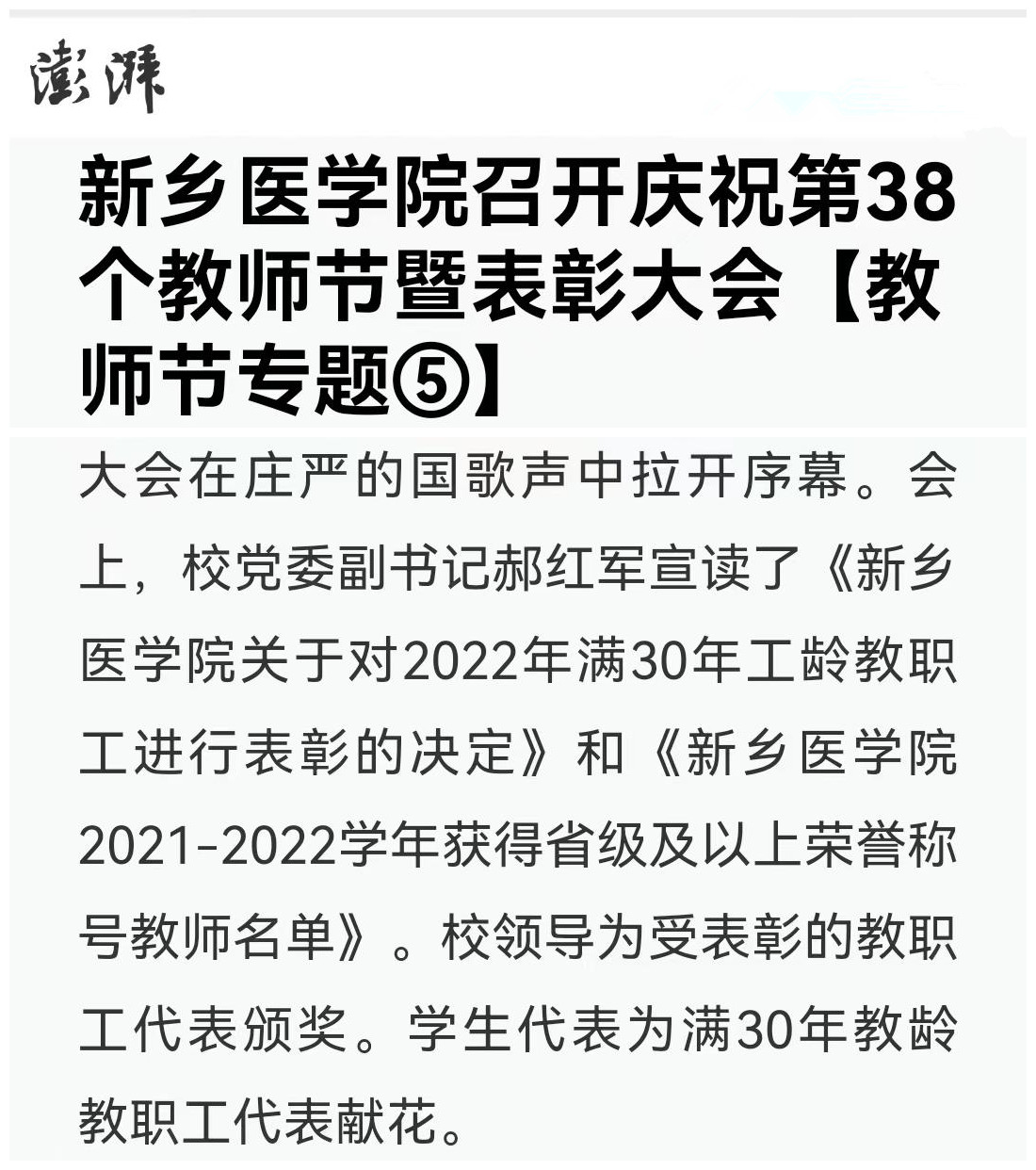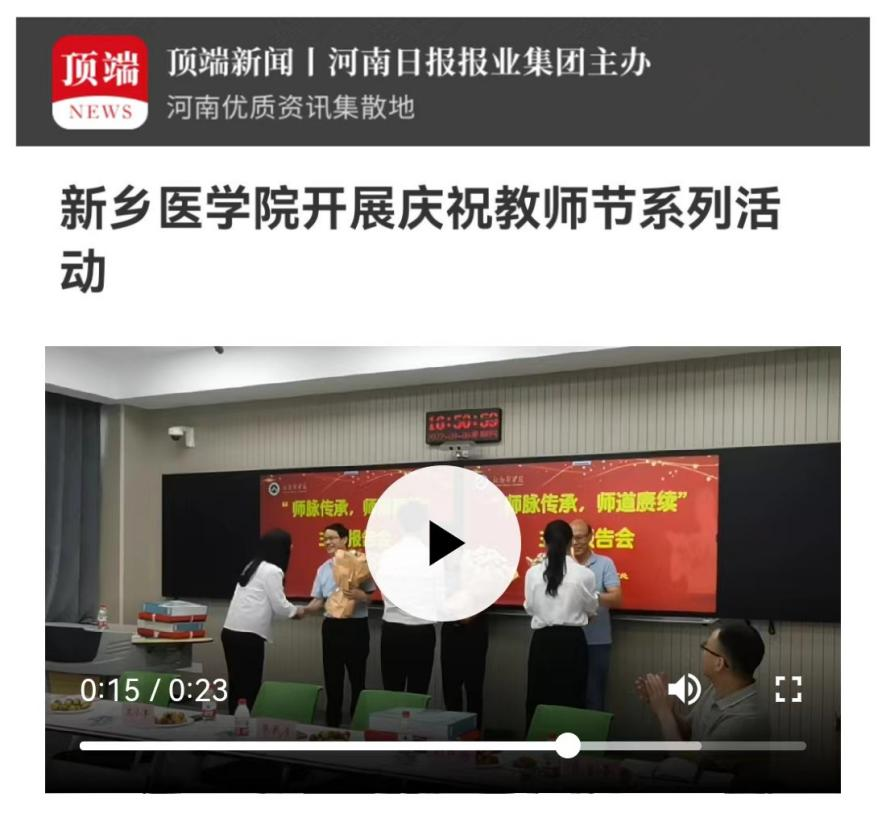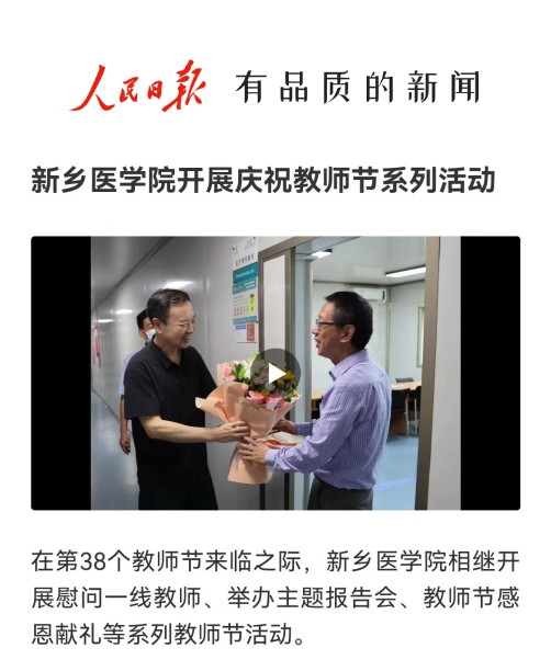 为弘扬全社会尊师重教风尚,日前,在第38个教师节来临之际,我校相继开展教师节表彰、慰问一线教师、举办主题报告会、教师节感恩献礼等系列教师节活动,多家权威媒体通过文图+视频等方式展开生动报道。(供稿:刘天庆)