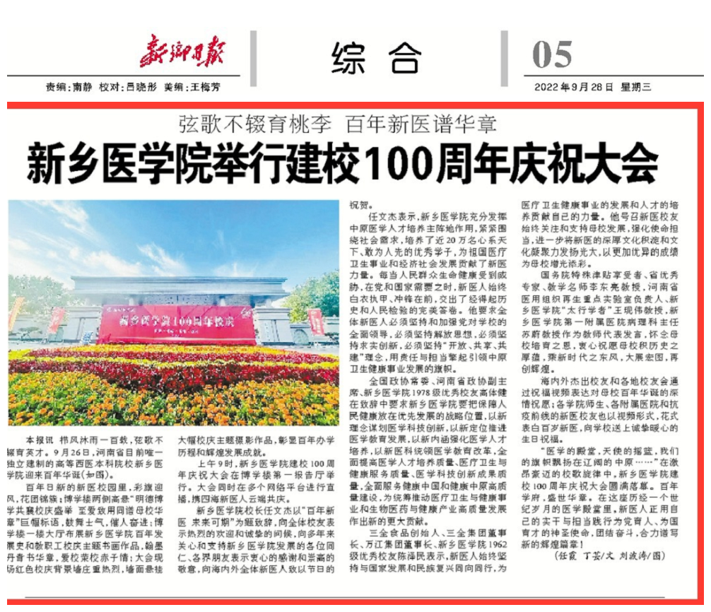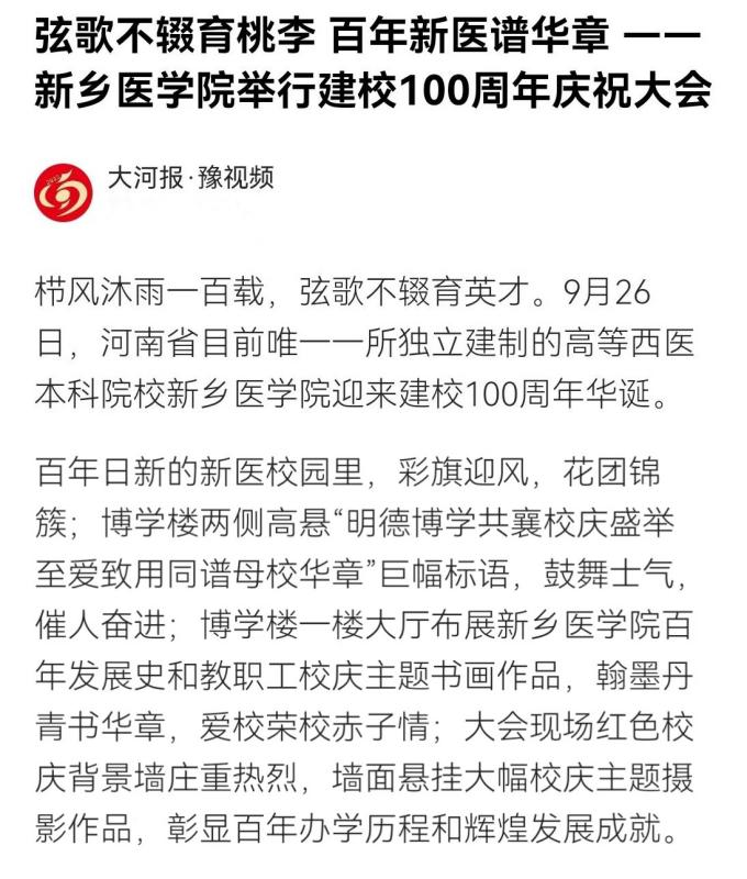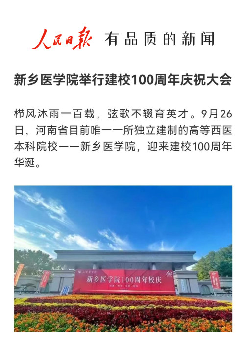 9月26日,我校迎来百年校庆日。一系列围绕庆祝大会、百年辉煌历程、师生庆祝活动的稿件相继在人民日报客户端、学习强国、《河南日报》《新乡日报》、豫视频等媒体进行权威、全媒、强势报道,报道点击量10w+,真正做到覆盖广、传播快、实效强。