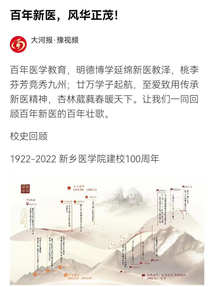 9月26日,我校迎来百年校庆日。一系列围绕庆祝大会、百年辉煌历程、师生庆祝活动的稿件相继在人民日报客户端、学习强国、《河南日报》《新乡日报》、豫视频等媒体进行权威、全媒、强势报道,报道点击量10w+,真正做到覆盖广、传播快、实效强。