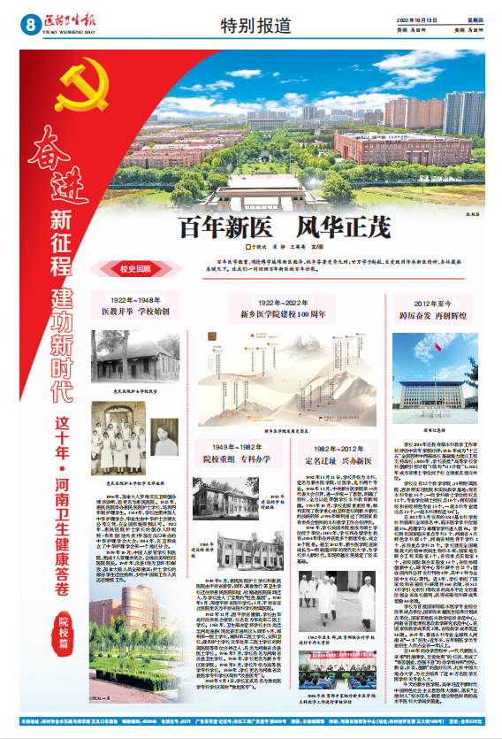 在我校百年辉煌历程的报道中,围绕学校始创、院校重组、定名迁址、再创辉煌四个阶段,简要、系统回顾了百年历程;大量历史照片的配放,尤其照片色彩由黑白到彩色的转变,厚重新医无形中得到更好体现。(供稿:刘天庆)