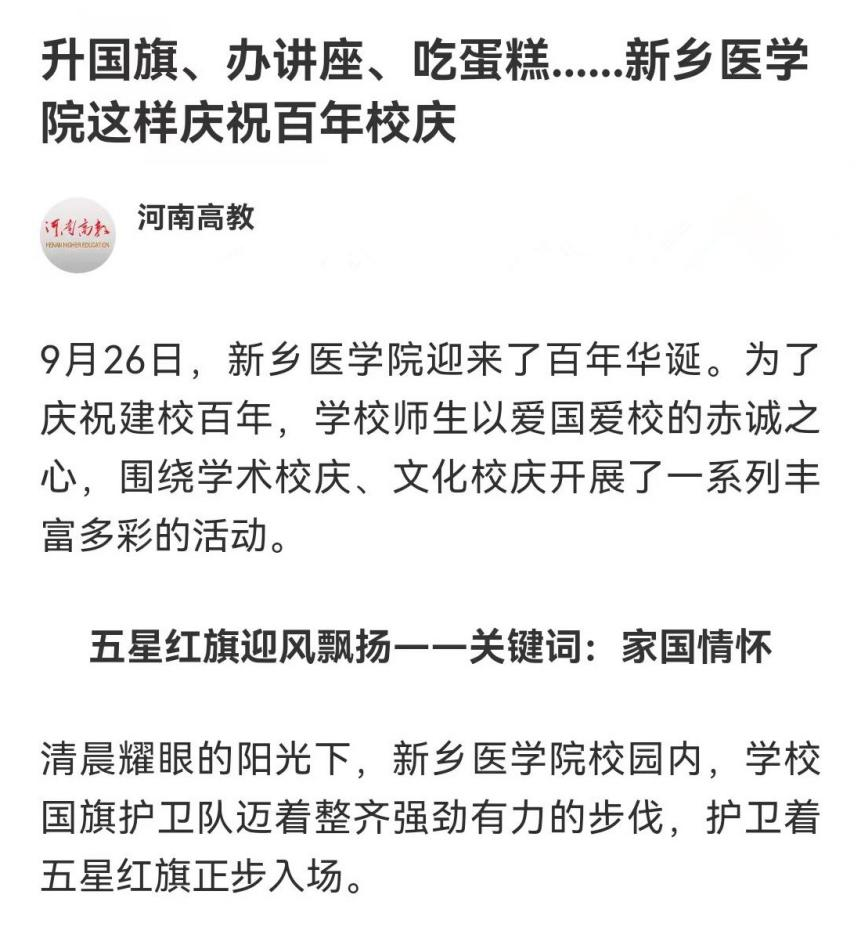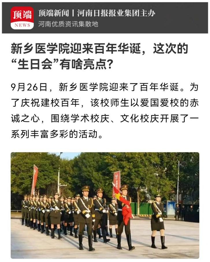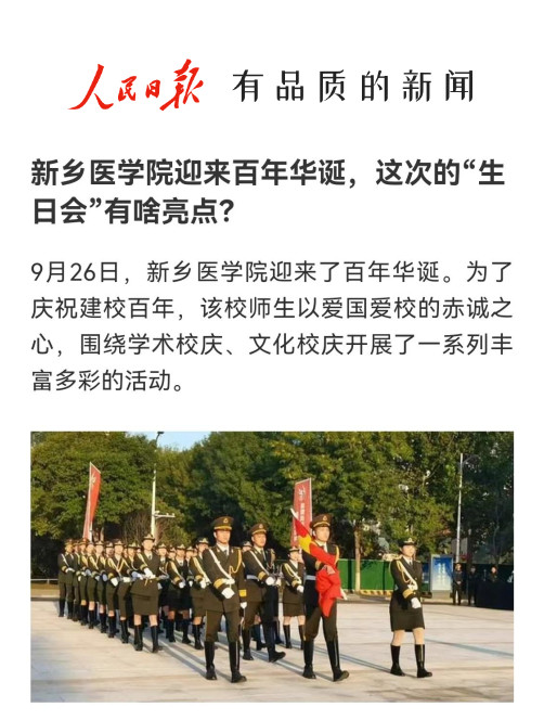 9月26日,我校迎来百年校庆日。一系列围绕庆祝大会、百年辉煌历程、师生庆祝活动的稿件相继在人民日报客户端、学习强国、《河南日报》《新乡日报》、豫视频等媒体进行权威、全媒、强势报道,报道点击量10w+,真正做到覆盖广、传播快、实效强。