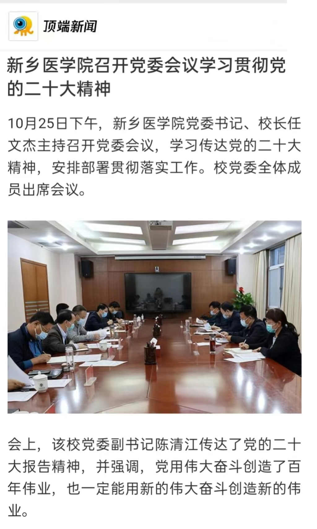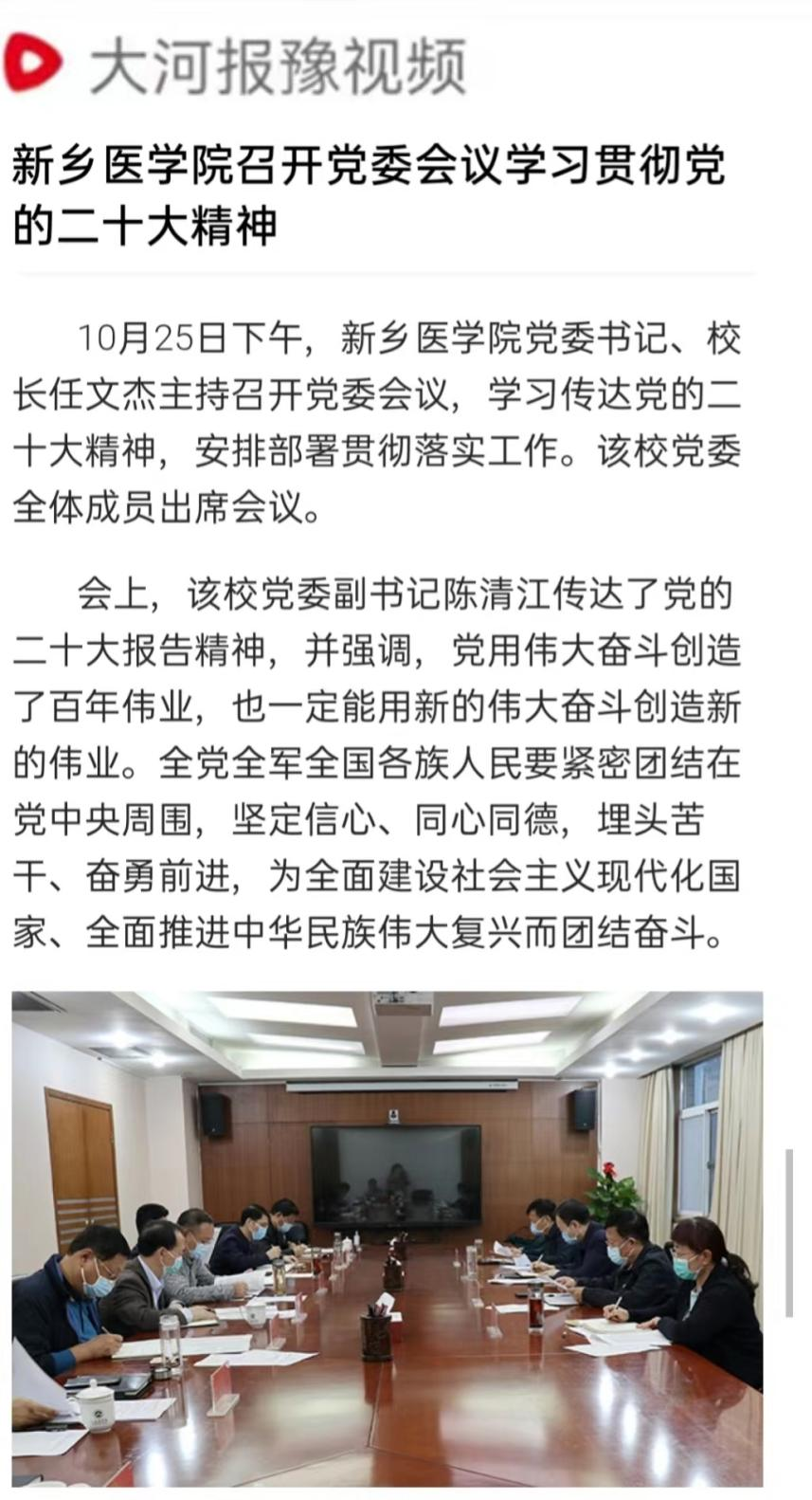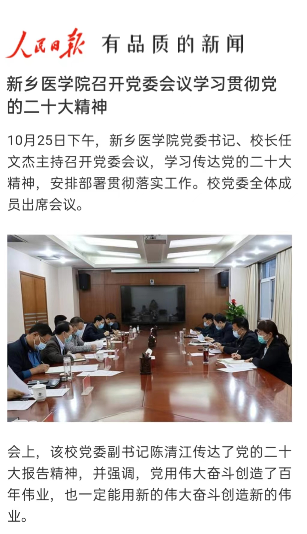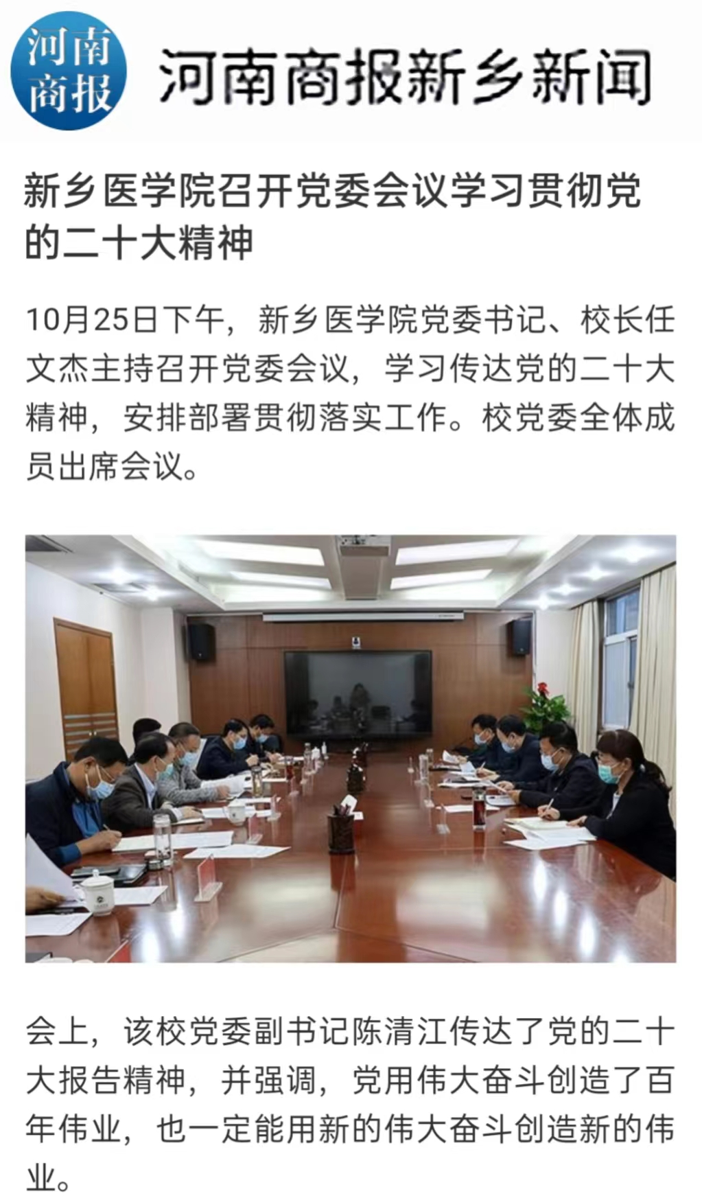 日前,我校召开党委会议学习传达党的二十大精神,安排部署贯彻落实工作。校党委书记、校长任文杰在会议上提出深化认识、把牢方向,精心组织、深入学习,指导实践、引领发展等三点要求。(供稿:刘天庆 周子媛)