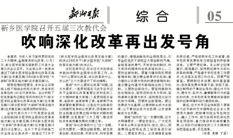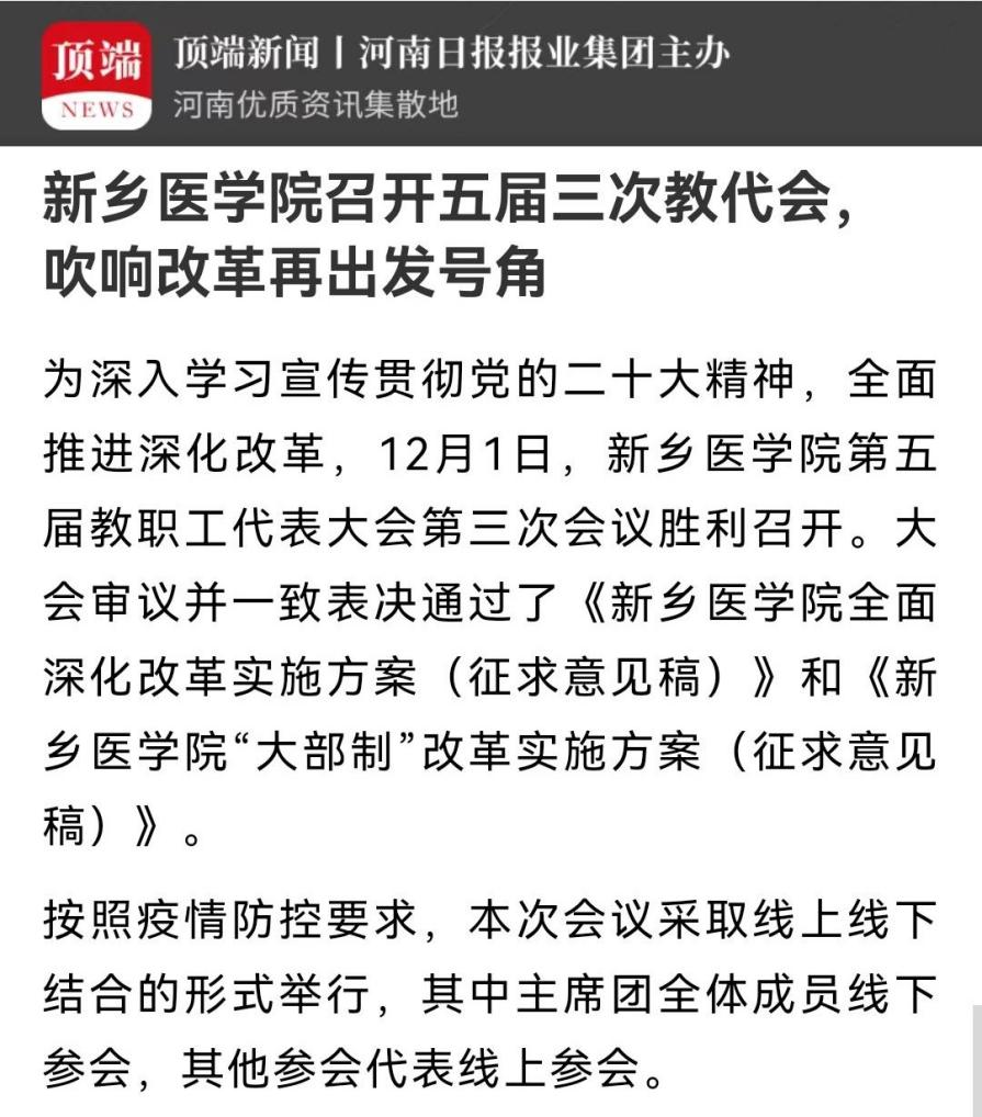 日前,我校召开第五届教职工代表大会第三次会议。大会审议并一致表决通过了《华亿在线手机版(大中国区)全面深化改革实施方案(征求意见稿)》和《华亿在线手机版(大中国区)“大部制”改革实施方案(征求意见稿)》。大会上,校党委书记、校长任文杰就如何做好全面深化改革工作,从“为什么要深化改革、深化改革改什么、怎么改”三个方面进行了深刻阐释。多家媒体报道。(供稿:刘天庆)