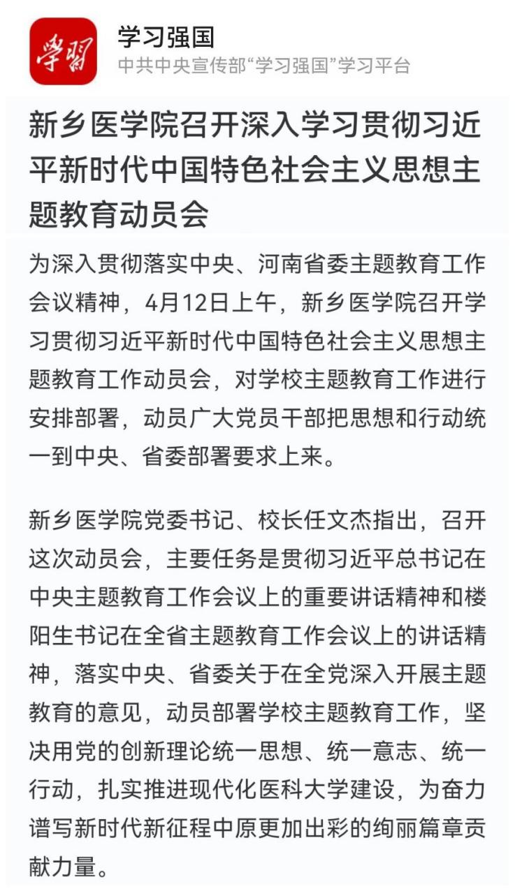 【学习强国】等媒体报道我校学习贯彻习近平新时代中国特色社会主义思想主题教育动员会