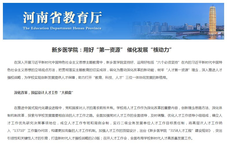 【《河南日报》、省教育厅官网】等媒体报道我校深化改革 推动人才工作高质量发展