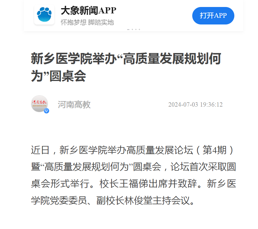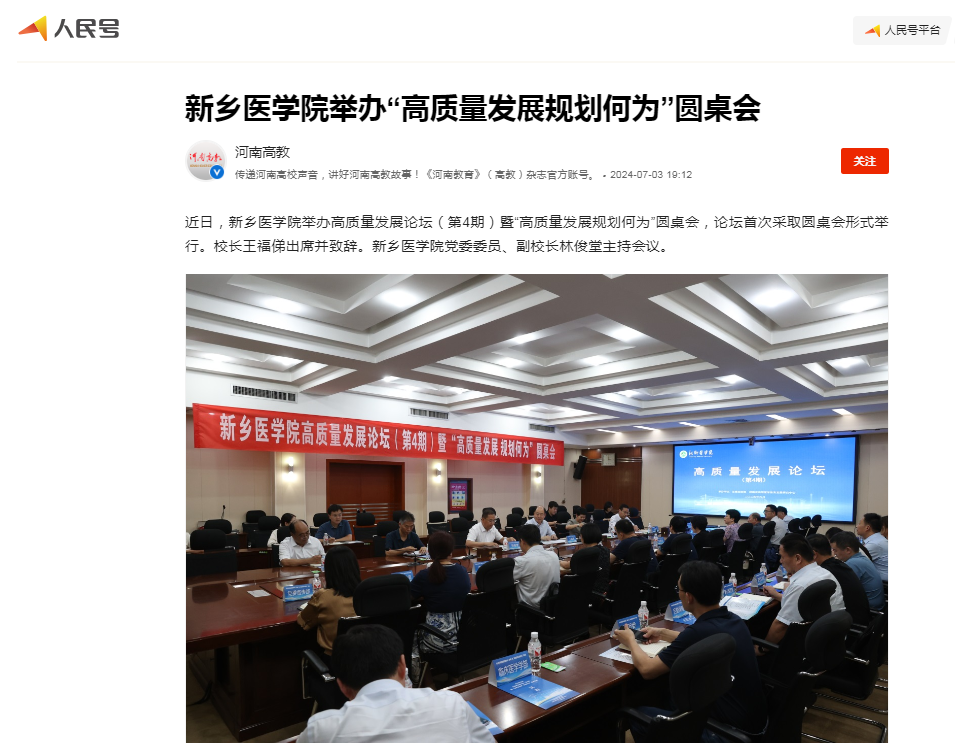 【人民日报客户端】等媒体报道我校举办高质量发展论坛暨“高质量发展规划何为”圆桌会