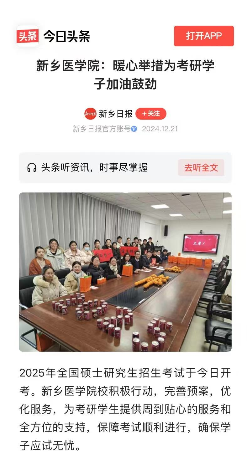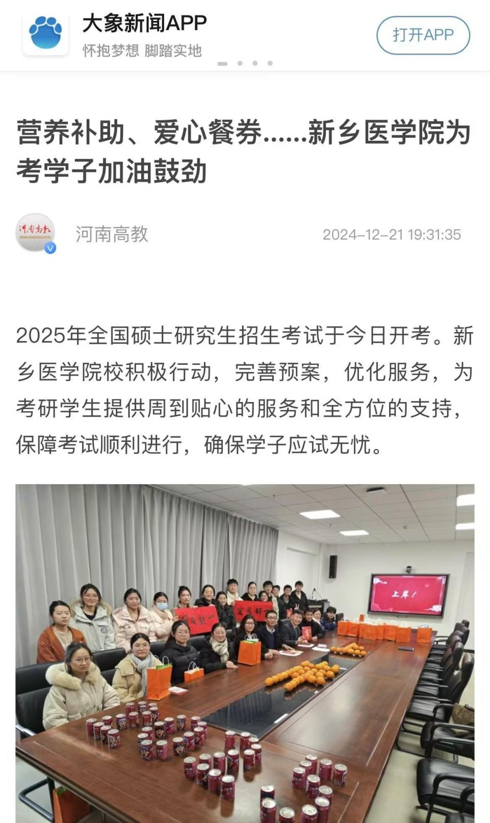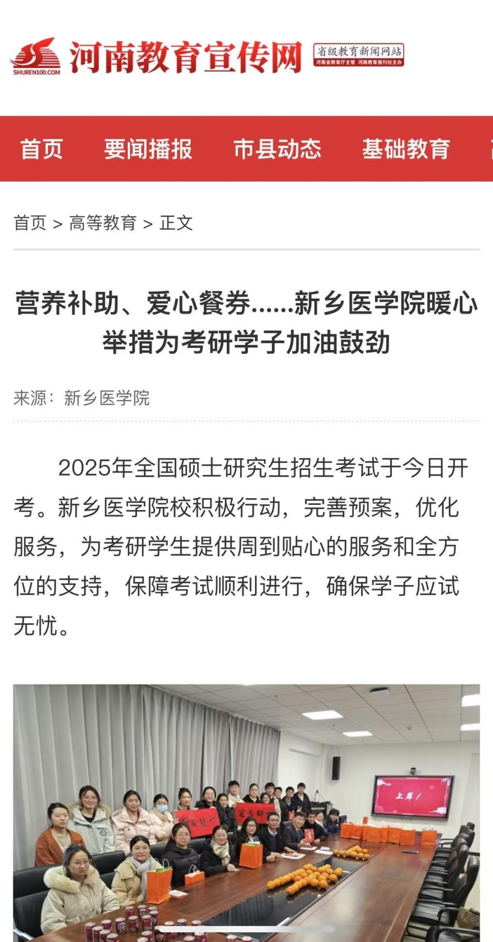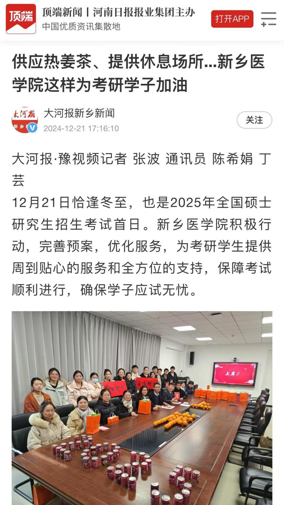 12月21日,2025年全国硕士研究生招生考试开考。我校积极行动,完善预案,优化服务,为考研学生提供周到贴心的服务和全方位的支持,保障考试顺利进行,确保学子应试无忧。发放免费餐券、提供心理疏导服务、定制“加油”卡和文具……各种暖心举措帮助考研学生减轻压力,让他们在追逐梦想的道路上更加坚定自信,安心备考,为实现自己的人生目标奋勇前行。河南日报客户端、顶端新闻、大象新闻、今日头条、河南教育宣传网等多家媒体报道。