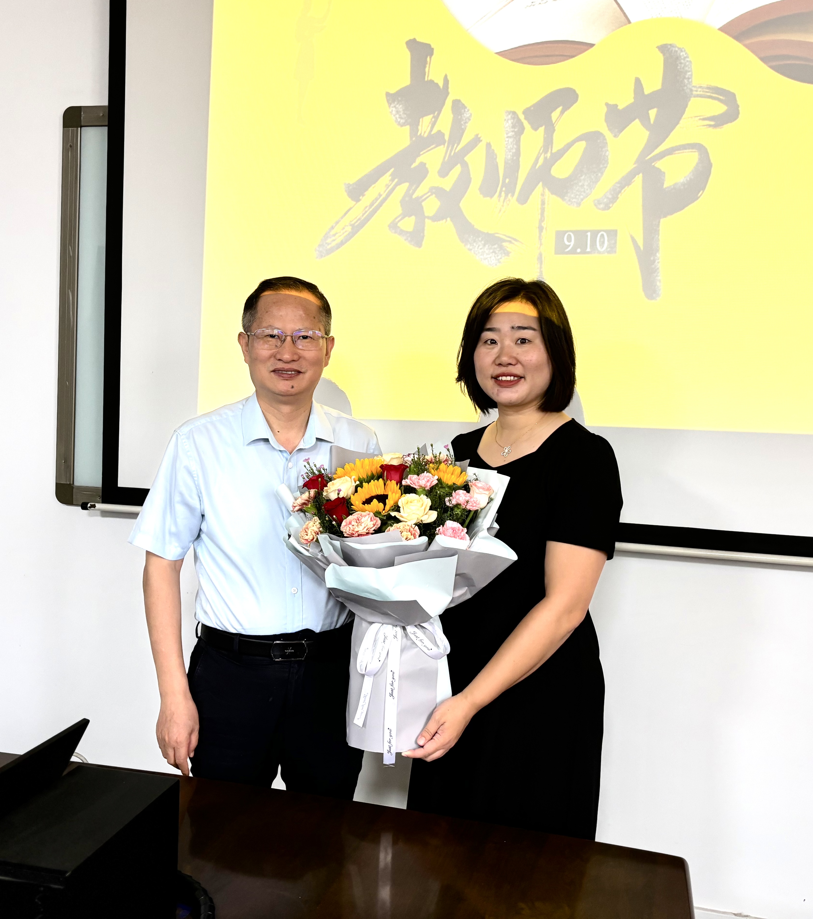 2024年9月10日上午,学院领导班子成员深入教学一线,分别为满30年教龄的优秀教师、2024年国家自然科学基金获得者、第五届河南省本科高校教师课堂创新大赛暨第四届全国高校教师教学创新大赛获奖者及享受国务院特殊津贴人员等优秀教师代表送上鲜花和节日祝福。