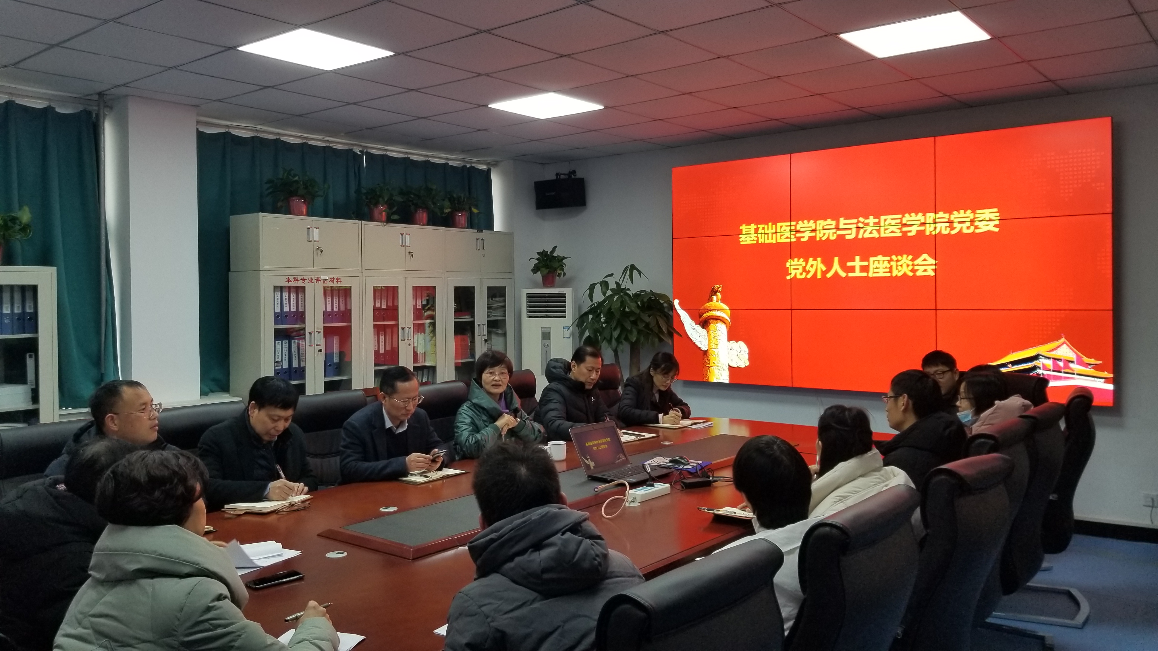 (文/图 李鹏)1月5日上午8:30,基础医学院与法医学院党委在老实验楼443会议室召开党外人士和高层次人才代表座谈会,基础医学院与法医学院党委书记王宏玲,党委副书记李照勇、白婕,基础医学院副院长高福莲、千新来、赵晓生,法医学院副院长付升旗、何广杰出席座谈会,基础医学院与法医学院党外人士和高层次人才代表参加了会议。会议由党委书记王宏玲主持。