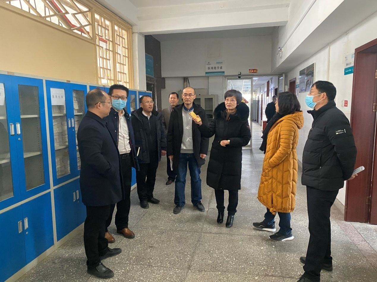 (文/周平鑫 图/周平鑫)1月15日下午,学校安全集中整治检查南校区检查组一行5人对我院开展安全生产检查工作,基础医学院与法医学院党委书记王宏玲、基础医学院院长任峰、副书记李照勇、白婕、副院长高福莲、赵晓生等领导陪同检查。