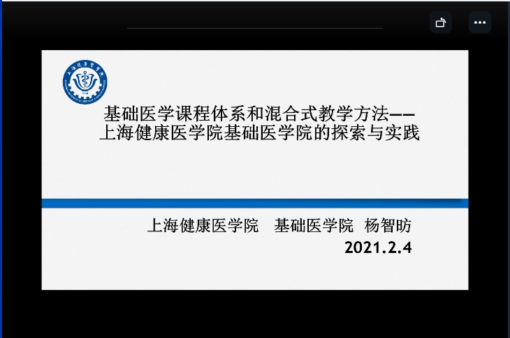 杨院长结合上海健康医学院的教学实践,从基础医学课程整合实践、教学团队建设、混合式教学方法改革的探索与实践、基础医学院实验中心扩建计划等几个方面提出自身独到的见解与理念。