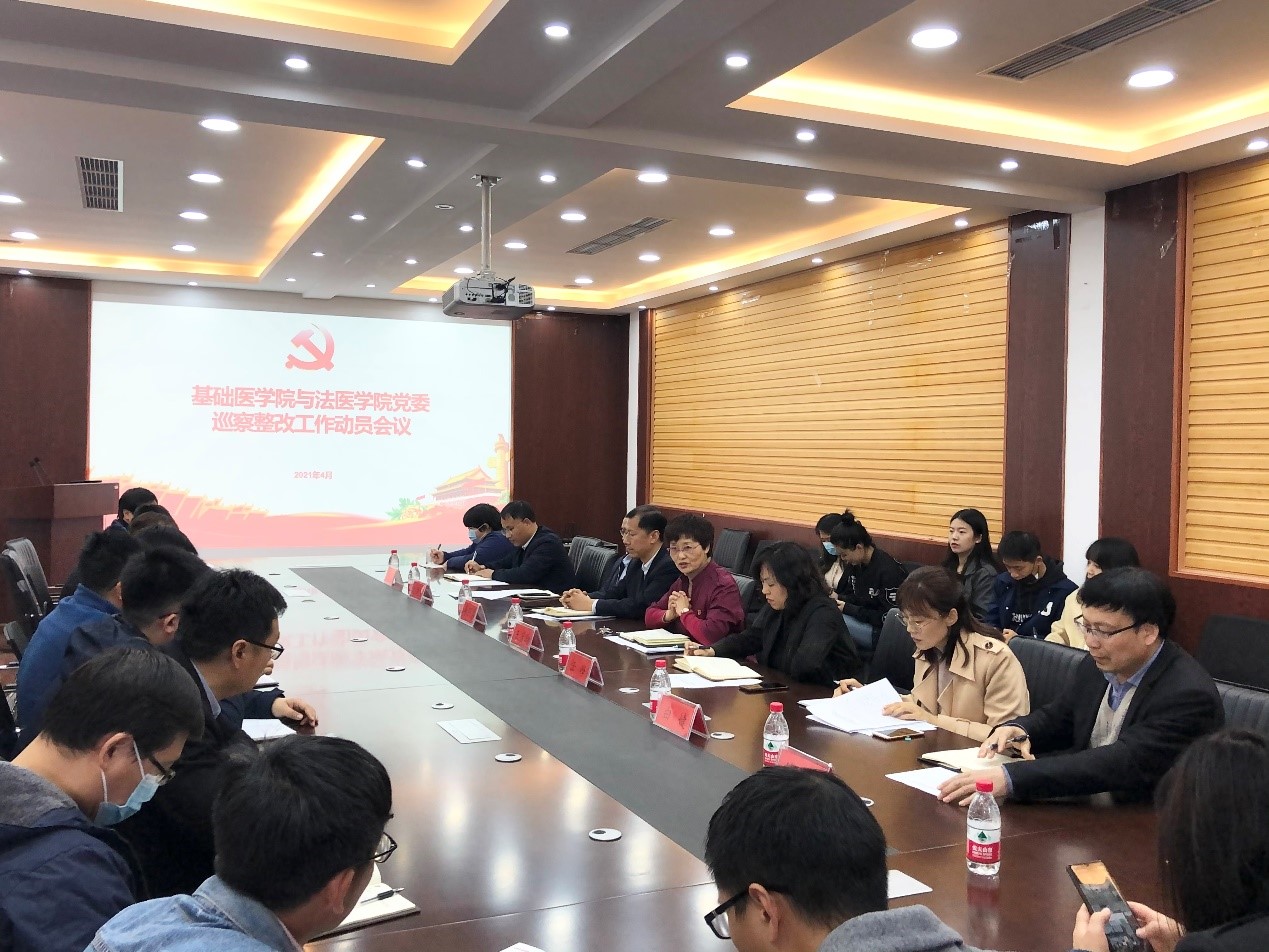 (文/图 涂飞)4月22日上午,基础医学院与法医学院党委在新实验楼六楼会议室召开巡察整改工作动员会。基础医学院与法医学院党委书记王宏玲,基础医学院院长任峰,基础医学院与法医学院党委副书记李照勇、白婕,基础医学院副院长赵晓生及法医学院副院长付升旗、何广杰出席会议。基础医学院与法医学院各支部书记、各科室主任参加会议。王宏玲主持会议。