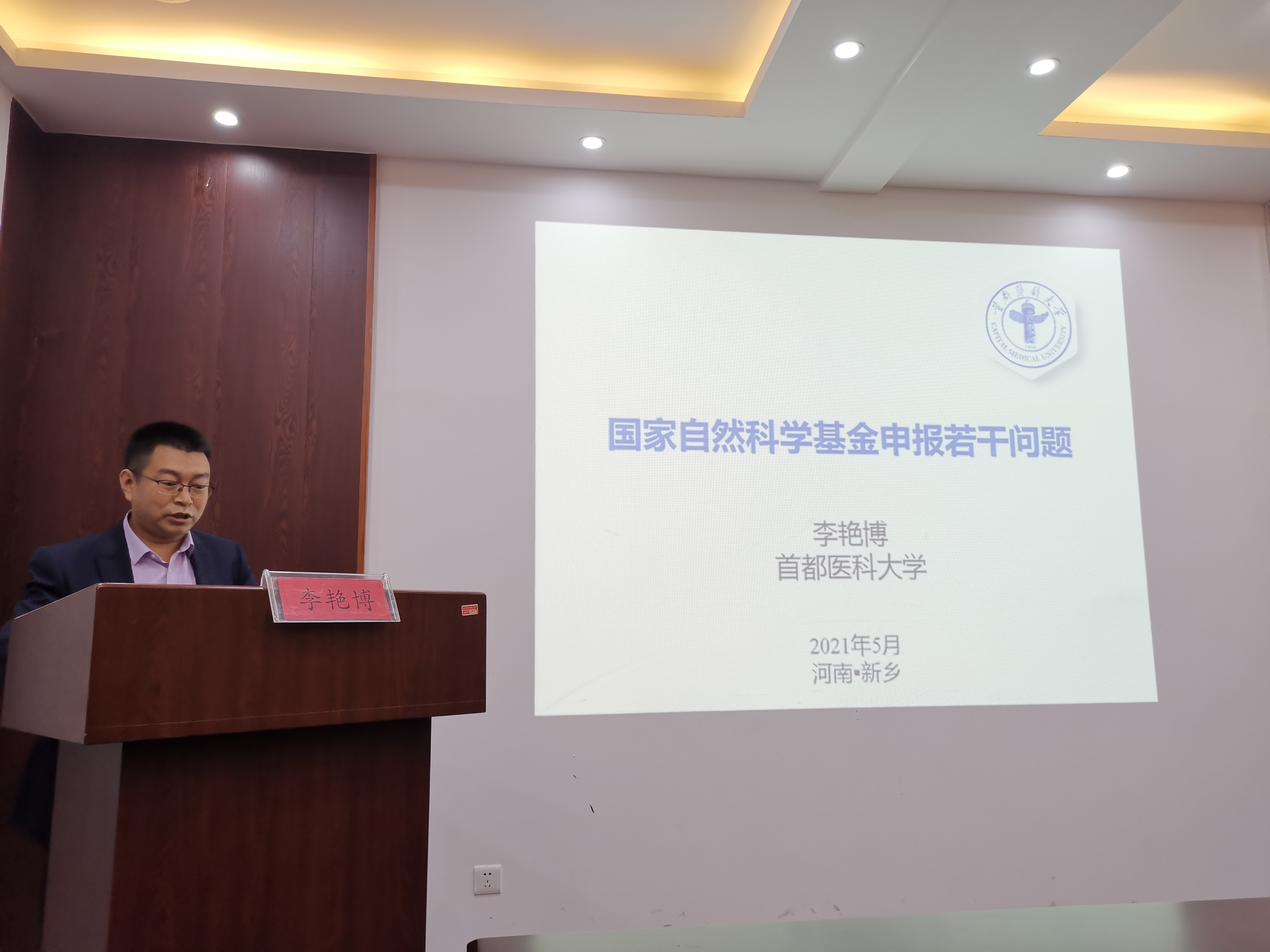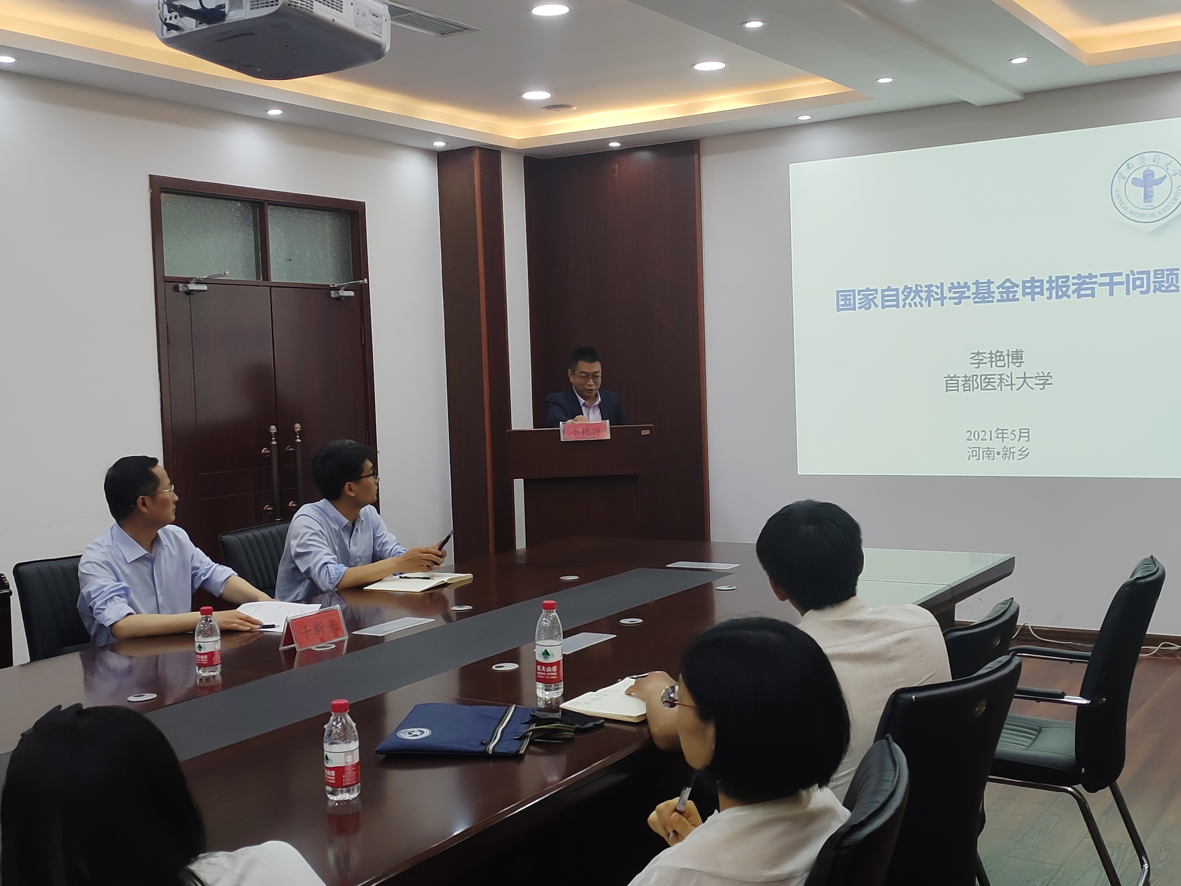 (文/陈彩丽 图/杨子善)2021年5月21日,基础医学院“卓越论坛”系列讲座第五期在新实验大楼六楼会议室进行。首都医科大学博士生导师李艳博教授以《国家自然科学基金申报若干问题》为题向全院师生做了精彩的学术报告。本次报告会由基础医学院副院长千新来主持。