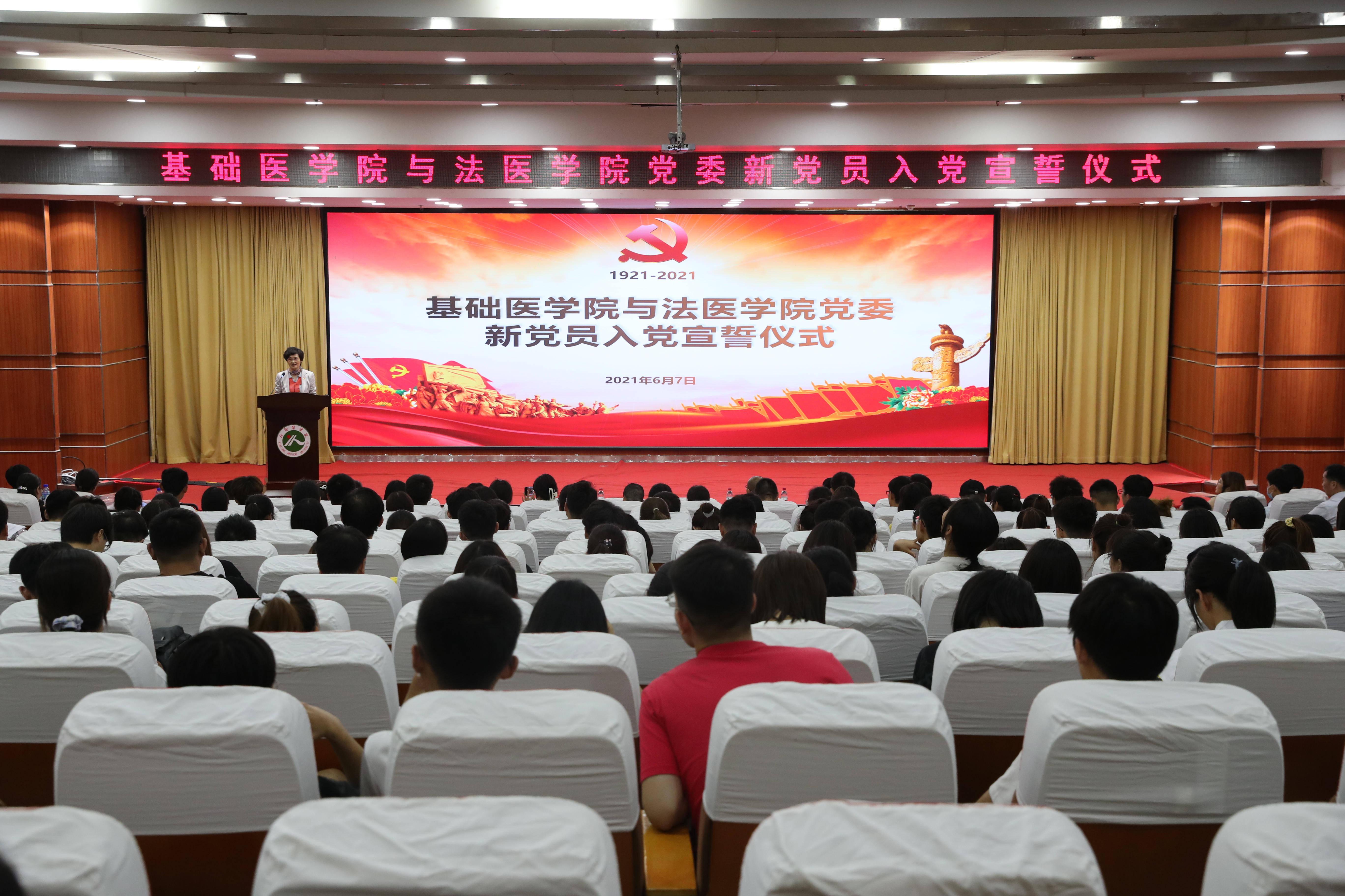 (文/张博 吴可凡 图/杨迪)6月7日下午18:30时,学校第一报告厅灯火通明,气氛热烈,“我们是共产党员”的激扬旋律回荡在大厅,325名党员齐聚一堂,基础医学院与法医学院党委举行的新党员入党宣誓仪式隆重召开。基础医学院与法医学院党委书记王宏玲,副书记李照勇、白婕,基础医学院副院长赵晓生、法医学院副院长付升旗、何广杰出席,仪式由李照勇主持。