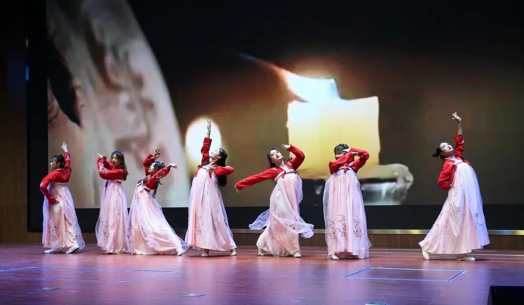 《盛世清平》用曼妙的舞姿表达生逢盛世的喜悦,歌颂在党领导下的盛世中华;情景剧《你我的三次目送》以“新生开学时与父母之间的目送”“见习医院敲定时对三年时光的目送”和“要离开基础医学院时学院对学子的目送”为节点,表现了莘莘学子对基础医学院的不舍之情与感恩之心,戳中全场泪点;合唱队带来的《不忘初心》唱出新医学子秉承校训“明德博学 至爱致用”,锐意进取、勇于拼搏的精神风貌。最后,晚会在全体参演演员与出席领导合唱的《歌唱祖国》中圆满结束。