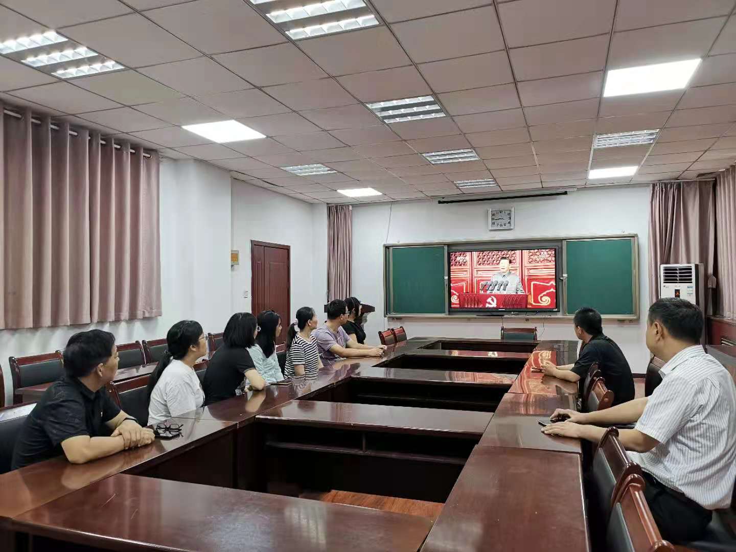 (文/张博 吴琼 图/孙永琨)7月1日上午8时,庆祝中国共产党成立100周年大会在北京天安门广场隆重举行,中共中央总书记、国家主席、中央军委主席习近平发表重要讲话。上午8时,基础医学院与法医学院党委副书记李照勇、白婕,基础医学院副院长高福莲、赵晓生,法医学院副院长付升旗、何广杰,基础医学院全体管理科室人员、辅导员集中收看大会。学院各党支部分别组织师生集中收听收看。