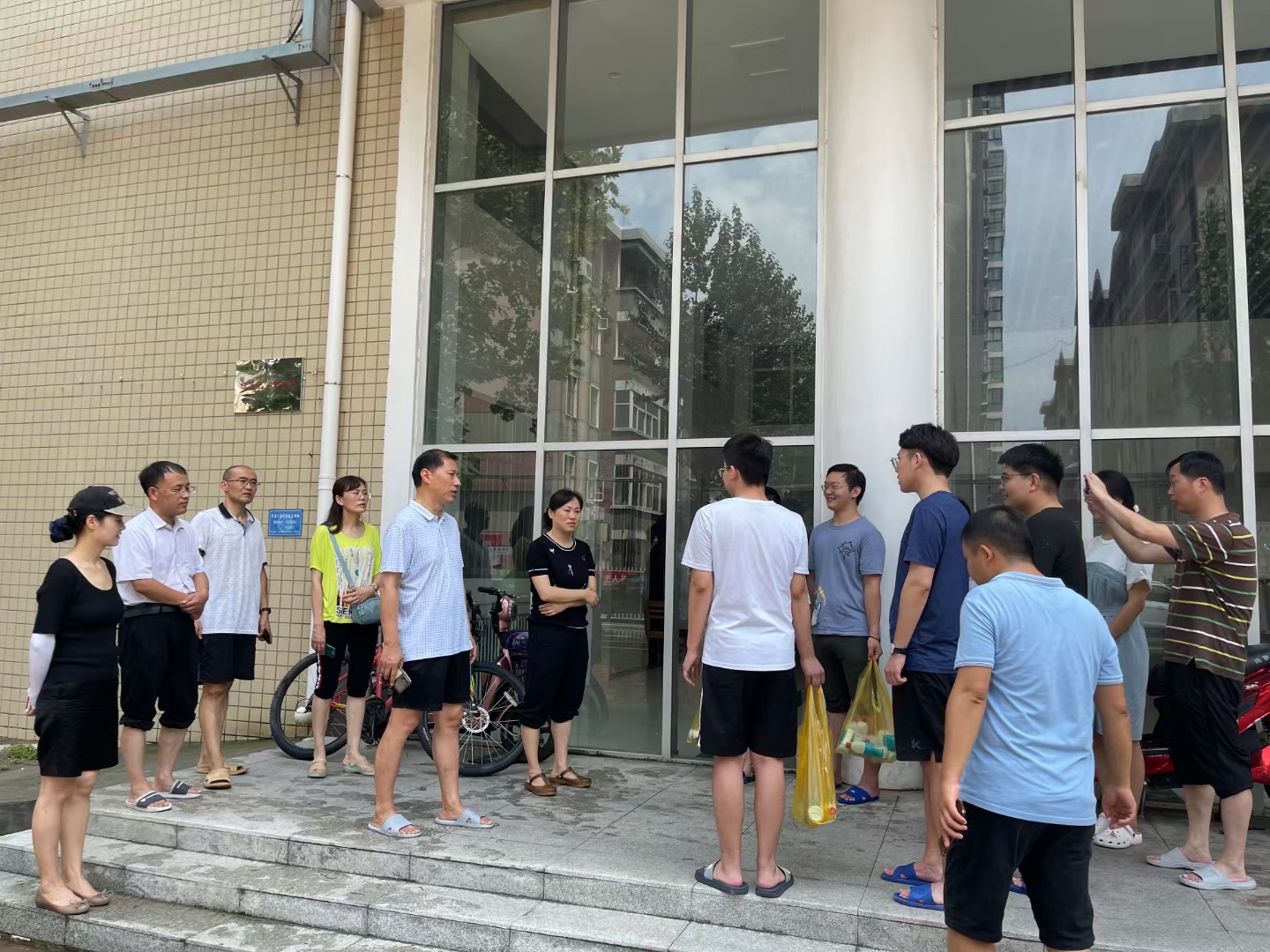 学院领导一行依次对新、老实验楼及学生宿舍各个房间进行了逐一检查、排查,详细了解了受灾情况,同时对留校的140余名学生进行了关心慰问。学院领导跟留校学生进行了深入交谈,安抚留校学生情绪,指导学生注意饮食卫生及灾后防疫,确保学生安全。并对检查中发现的问题进行登记,对排查出的安全隐患提出具体整改意见,给各个学系、实验室配备了相关消杀物品。