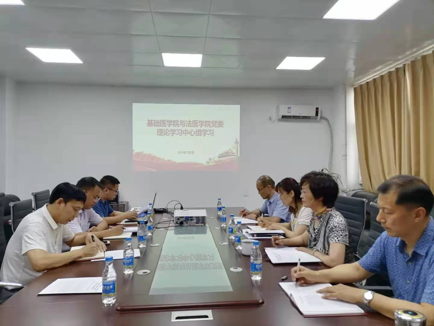 (文/图 吴文斌)7月2日下午,基础医学院与法医学院党委理论学习中心组在实验楼东配楼三楼331会议室开展集体学习,深入学习习近平总书记在庆祝中国共产党成立100周年大会上重要讲话精神。基础医学院与法医学院党委书记王宏玲,基础医学院与法医学院党委副书记李照勇、白婕,基础医学院副院长赵晓生及法医学院副院长付升旗、何广杰参加会议。会议由王宏玲主持。
