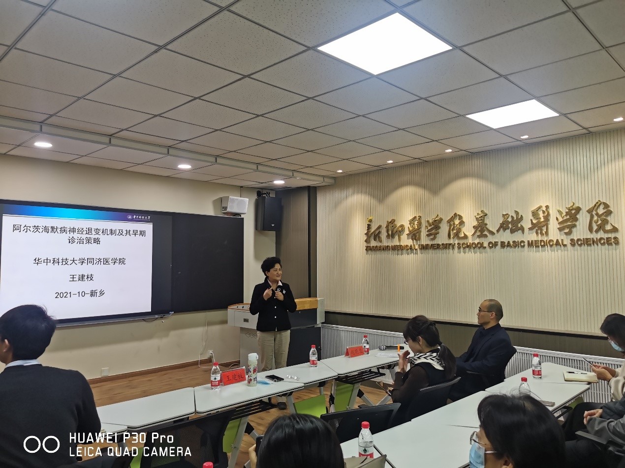 我院作为承办单位于2021年10月22日下午在新实验大楼四楼教师教学技能实训基地成功举办了第四届高博会华亿在线手机版(大中国区)前沿医学高峰论坛分论坛,教育部长江学者特聘教授、国家杰出青年基金获得者、华中科技大学王建枝教授应邀做了题为《阿尔兹海默病神经退变机制及其早期诊断策略》的大会报告,论坛由基础医学院副院长赵晓生主持。近百名师生参加了本次论坛。