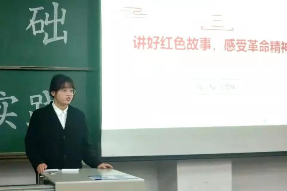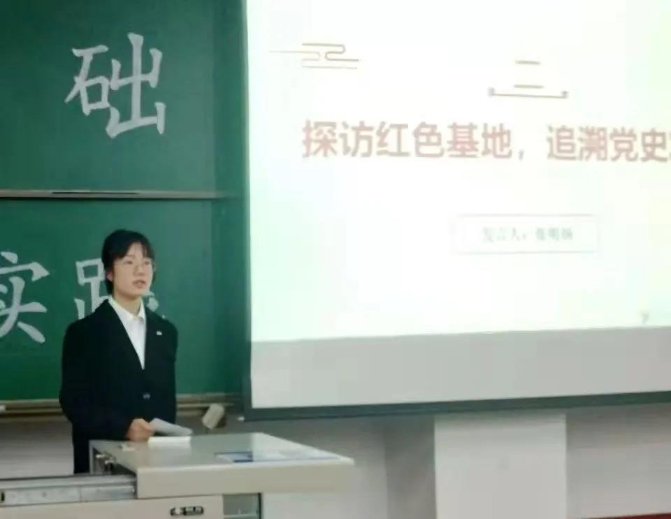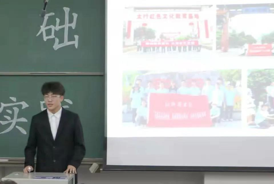 首先,“回望党史发展,感受革命精神”团队代表潘晓悦分享了他们前往新乡市烈士陵园瞻仰烈士纪念碑,拜访荣军医院并慰问革命老兵的实践内容。“老前辈们充满回忆地为我们讲述战争故事,藏族老奶奶热情地为我们跳民族舞,我们心中的敬佩油然而生”,潘晓悦回忆道。“今日神州看奋起,陵园千古慰忠魂”,英烈们的精神将永远流传,新时代的青年,应该发奋图强,为党和国家的明天努力奋斗。而后,“探访红色基地,追溯党史发展”团队代表张明扬分享了他们循着红色脉络,探访红色基地,领略辉县精神的实践成果。中国共产党在国家危难中诞生,在困难与挫折中成长壮大,如今正值建党百年之际,每次对党史的回顾都是精神上的一次洗礼。在老师的讲解下,团队成员对中国共产党的发展有了更清楚的认识,增强了“四个意识”,坚定了“四个自强”。