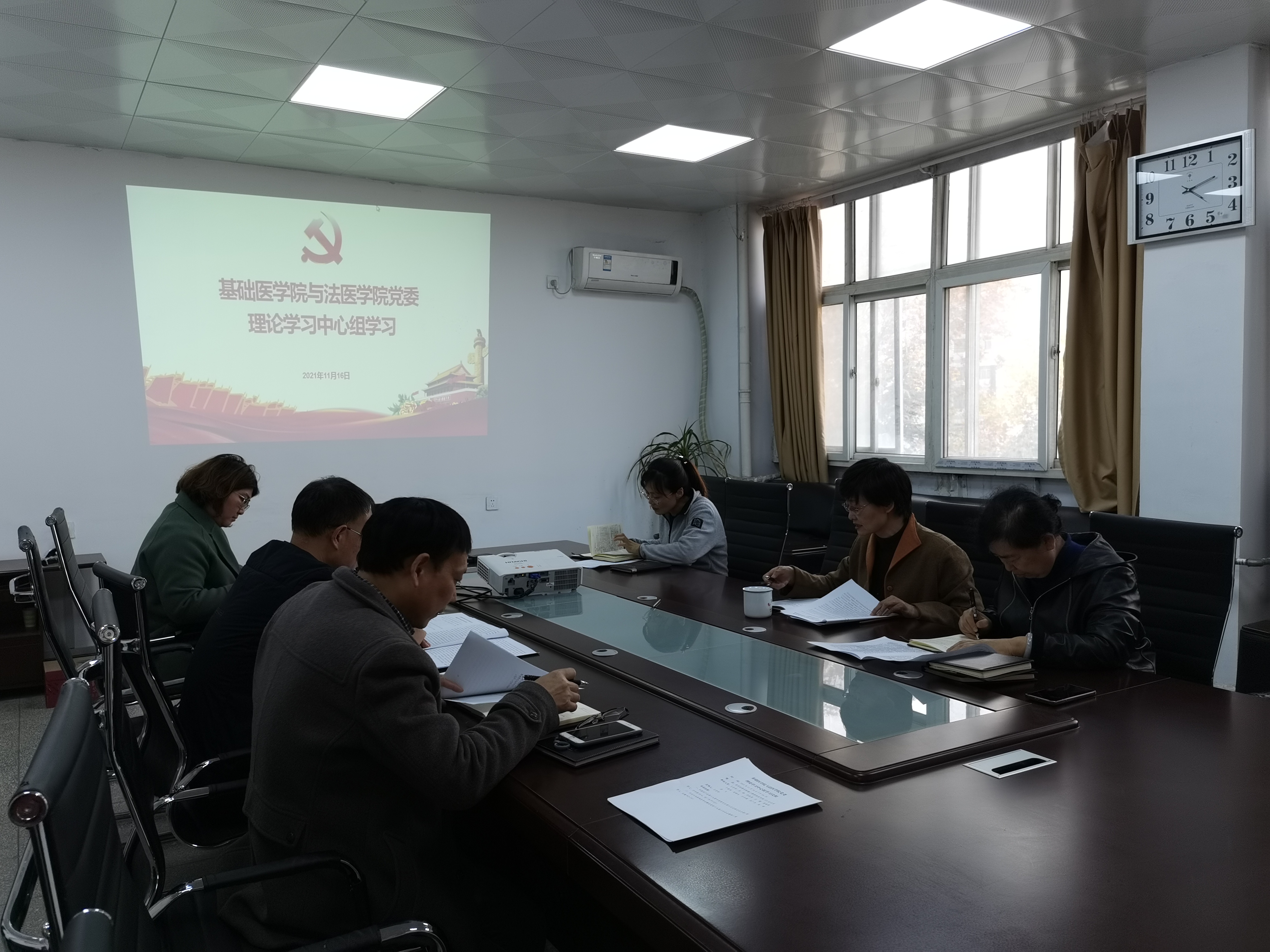 (文/吴文斌 图/涂飞)11月16日下午,基础医学院与法医学院党委基础医学院第二会议室开展集体学习,专题学习党的十九届六中全会精神。基础医学院与法医学院党委书记王宏玲,基础医学院与法医学院党委副书记白婕,基础医学院副院长高福莲及法医学院副院长付升旗、何广杰参加会议。会议由王宏玲主持。