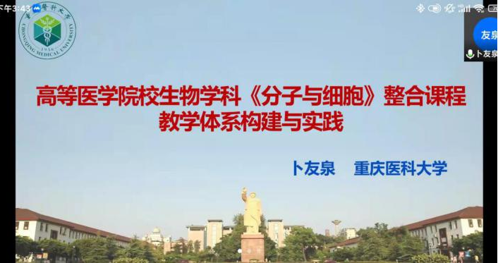 (文/图 杨婕妤 赵春澎)为了推进我院新专业建设与课程建设,进一步优化教学方法,促进学科建设以及医学基础教学与临床教学的进一步融合。2021年11月23日下午,我院通过腾讯会议举办了基础医学院第十三讲名师成长苑,讲座邀请了重庆医科大学基础医学院院长余华荣教授、《人体概述》课程负责人王娅兰教授和《分子与细胞》课程负责人卜友泉教授,讲座由赵晓生副院长主持,学院广大教职工踊跃参加。
