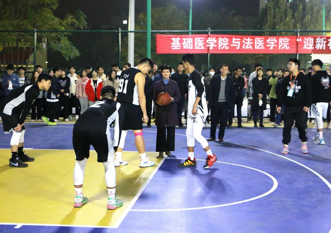 为礼赞建党百年,促进校园精神文明建设,营造朝气蓬勃,积极向上的校园体育文化氛围,11月1日-5日,基础医学院与法医学院工会在篮球场举办“迎新杯”篮球赛。基础医学院与法医学院党委书记王宏玲,党委副书记李照勇、白婕,各年级辅导员和基础医学院师生代表出席本次比赛。
