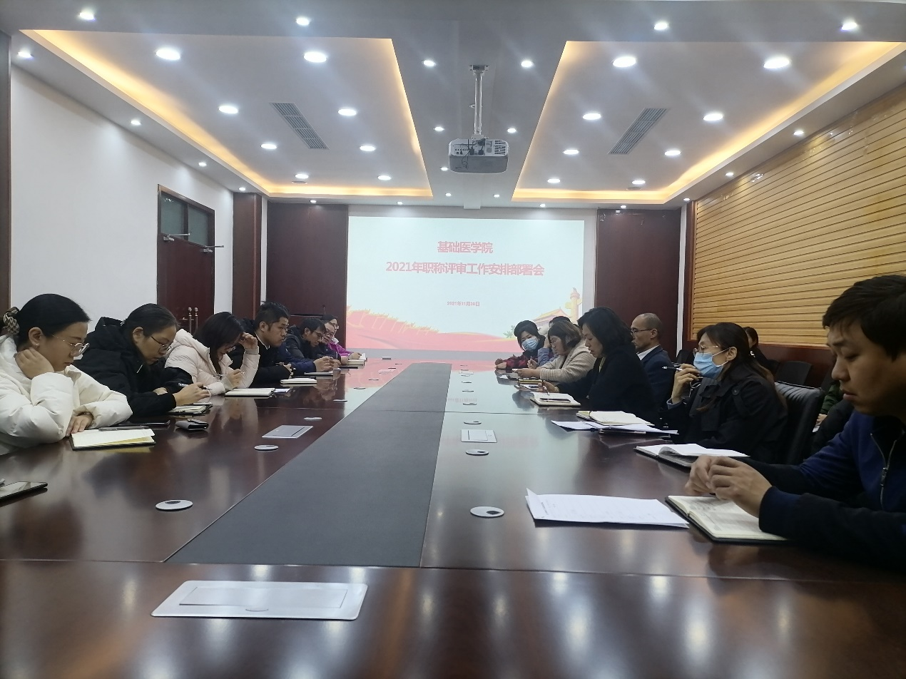 会上,组织学习了《基础医学院2021年专业技术职务初评推荐及量化计分办法》,解读了2021年职称评审新的政策,对2021年职称评审工作进行了安排部署,明确工作任务要求。