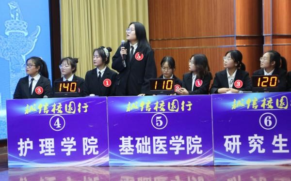 我院代表队在台下积极备战、勤学苦练,在台上沉着应战、稳定发挥。距离大赛开始仅剩几分钟,在候场区却仍能看到我院选手在温习比赛内容,毫不松懈,誓要拼出风采、赢得痛快。下午六点三十分,比赛正式拉开帷幕。在大赛之初,我院代表队运势不佳,抽到的题目难度较大,第一轮结束时,优势不大,甚至隐隐落后,但她们没有自乱阵脚、自我放弃,依然沉着冷静、状态良好。