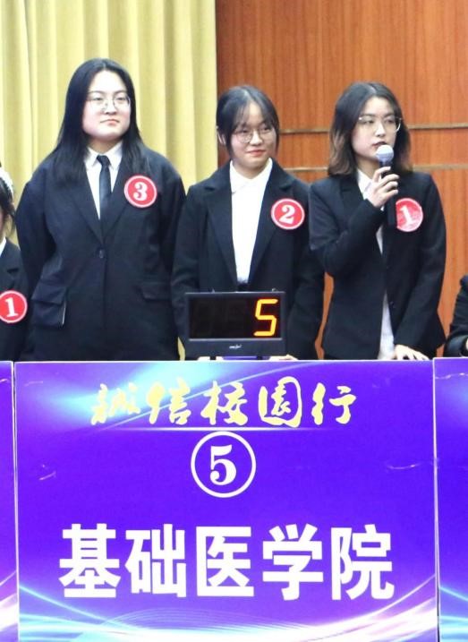 为培养学生诚实守信、知恩感恩、自立自强的良好品质,营造形式多样、健康向上的诚信校园文化氛围,我院积极鼓励学生参加“诚信校园行”学生资助知识大赛,经过层层选拔,四名表现出色的同学组成基础医学院代表队,一路披荆斩棘,闯过初赛、冲过复赛、挺进决赛。12月10日晚18:30,决赛在第三教学楼第一学术报告厅如期举行。