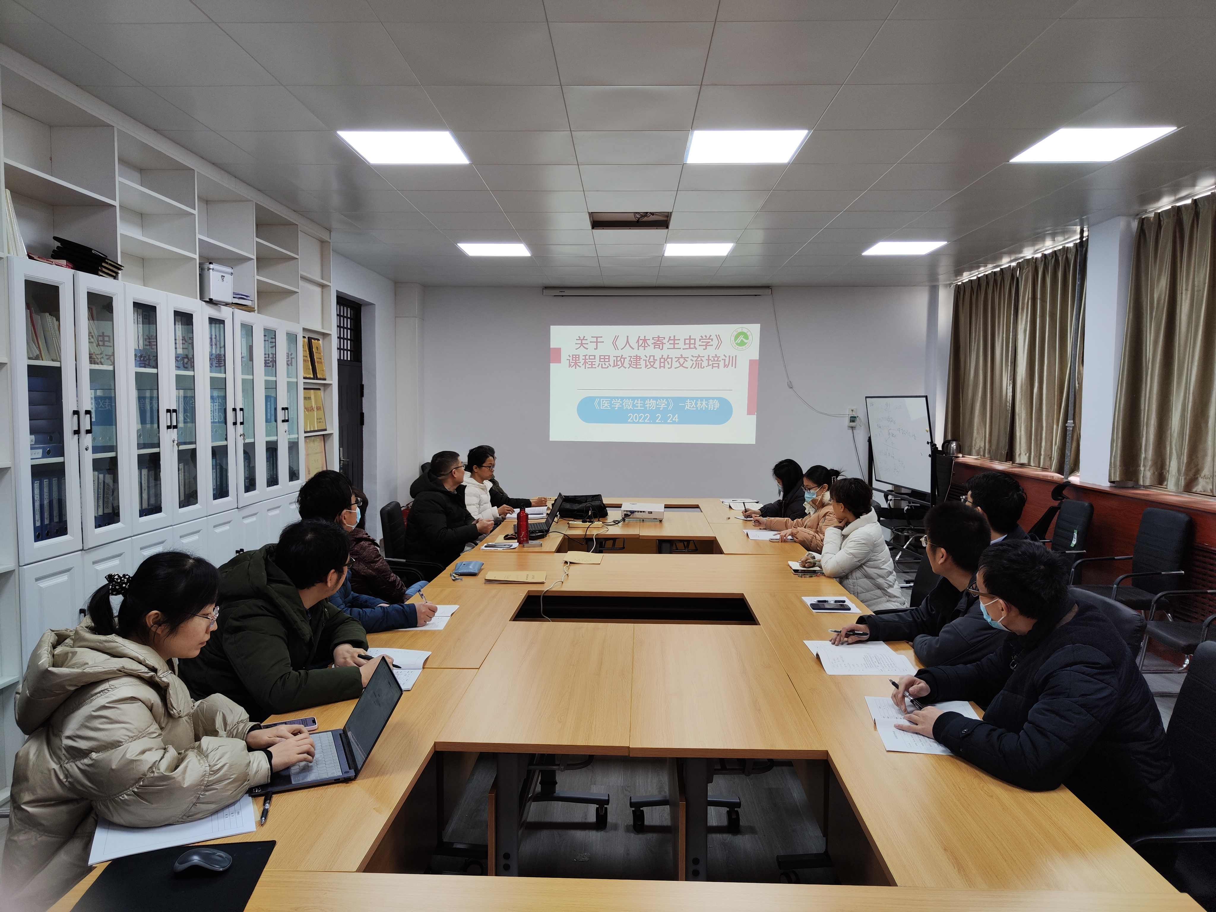(文/图 牛敬媛 杨振科)2022年2月24日上午,为了扎实推进病原生物学系2022年思政课程建设工作,该学系人体寄生虫学课程组进行了课程思政交流培训工作,邀请省级本科高校课程思政样板课程《医学微生物学》的课程负责人赵林静老师,为全体课程组教师进行了有关课程思政如何运用到课堂中的培训。