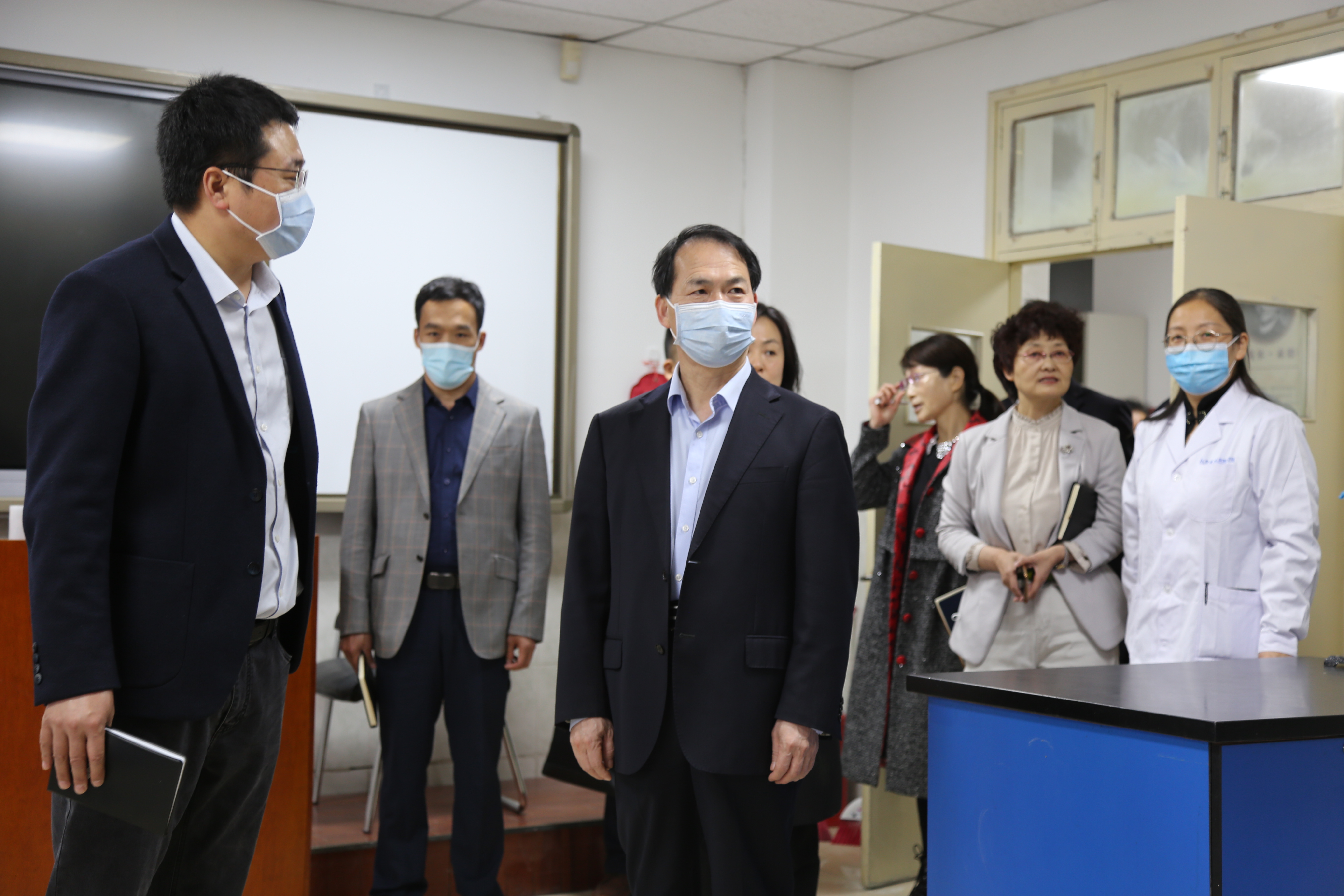 雒保军一行首先来到基础医学院机能学实验室,详细查看实验室环境条件、了解实验室仪器设备的使用,认真听取实验室负责人对目前实验室师资队伍、教学运行等情况的介绍。随后,雒保军认真听取了钟加滕对病理学系师资队伍建设、人才培养、学科建设、科学研究、存在的问题及未来的工作打算等方面的汇报,以及关于对学校发展的意见、建议,详细了解他工作、生活方面的近况,充分肯定了他在病理学系发展和建设方面取得的成绩。