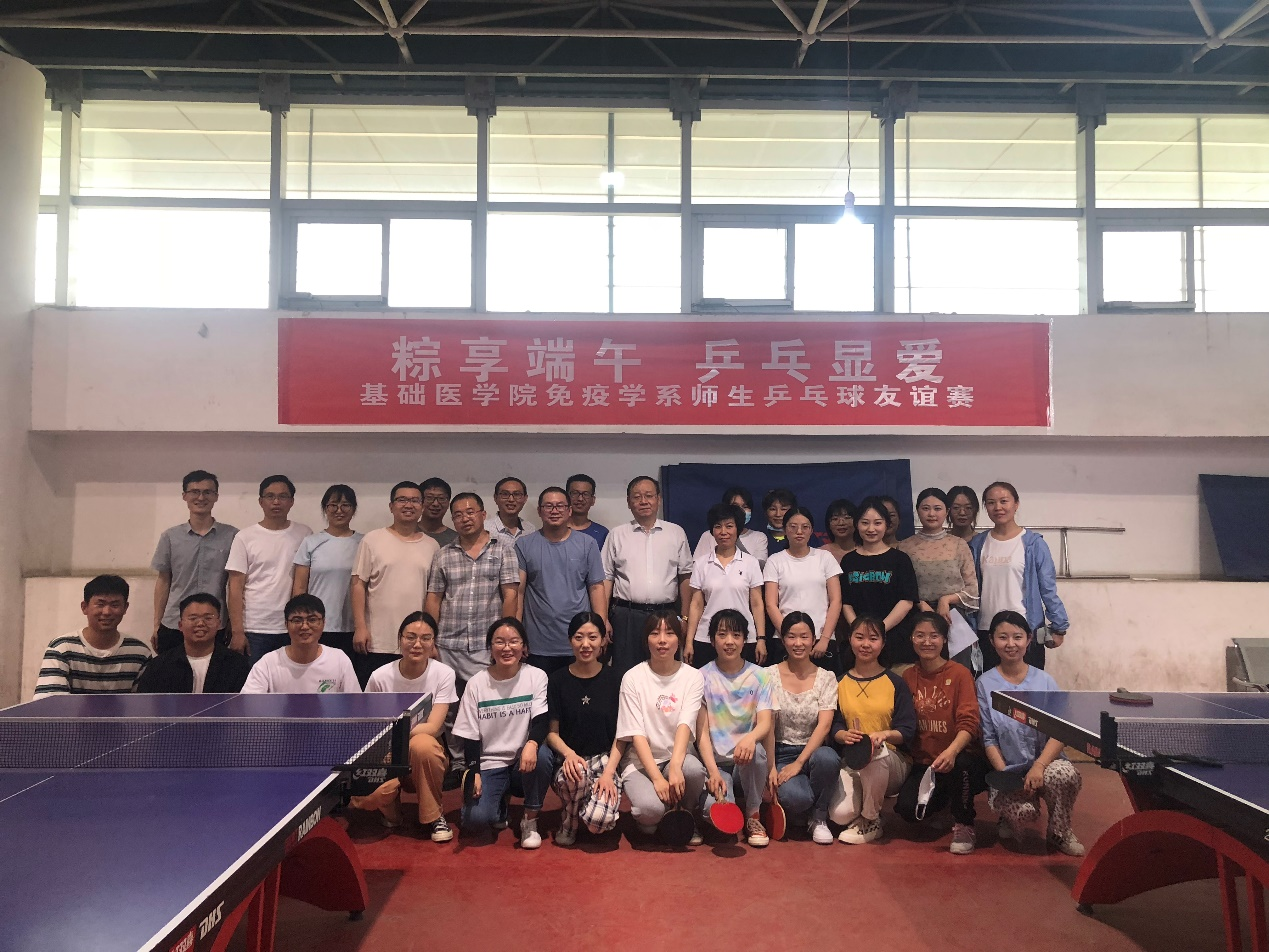 (文/陈彩丽 于莉莉 图/杨子善)端午节又名端阳节、重午节,最初是夏季驱离瘟神和祭龙的节日。为弘扬中华民族传统文化,彰显学校学院文化魅力和影响力,丰富师生课余文化生活,全面加强研究生健康监测管理,保障研究生身心健康,在这传统佳节来临之际,基础医学院免疫学系于2022年6月2日组织开展了以“粽享端午 乒乓显爱”为主题的端午节活动。下午三点半,在北校区体育馆三楼活动室乒乓球比赛正式拉开序幕,校党委委员、副校长王辉到场,并为比赛开球。