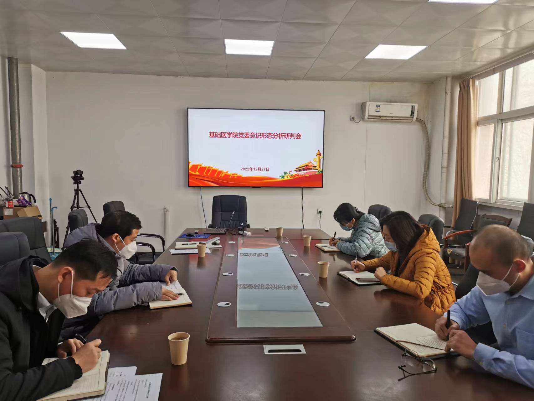11月27日上午,基础医学院党委在求真楼3楼331会议室召开2022年第四季度意识形态工作会议,基础医学院院长任峰,基础医学院党委副书记白婕,基础医学院副院长赵晓生出席会议。基础医学院党政办公室、学生工作办公室及团委负责人参加会议。会议由白婕主持。