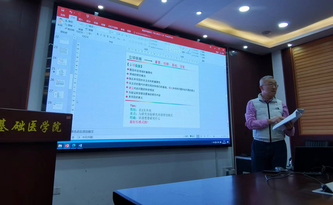 王云教授根据国基金申报指南,结合我院神经科学方向的标书从立项依据、研究内容、工作基础等方面进行了论证指导。同时,王教授就每份标书对申请人进行了一对一的指导,并对标书中存在的具体问题给予了认真详细的解答,既理清了写作思路又提高了撰写技巧,使在座的青年教师深受启发。