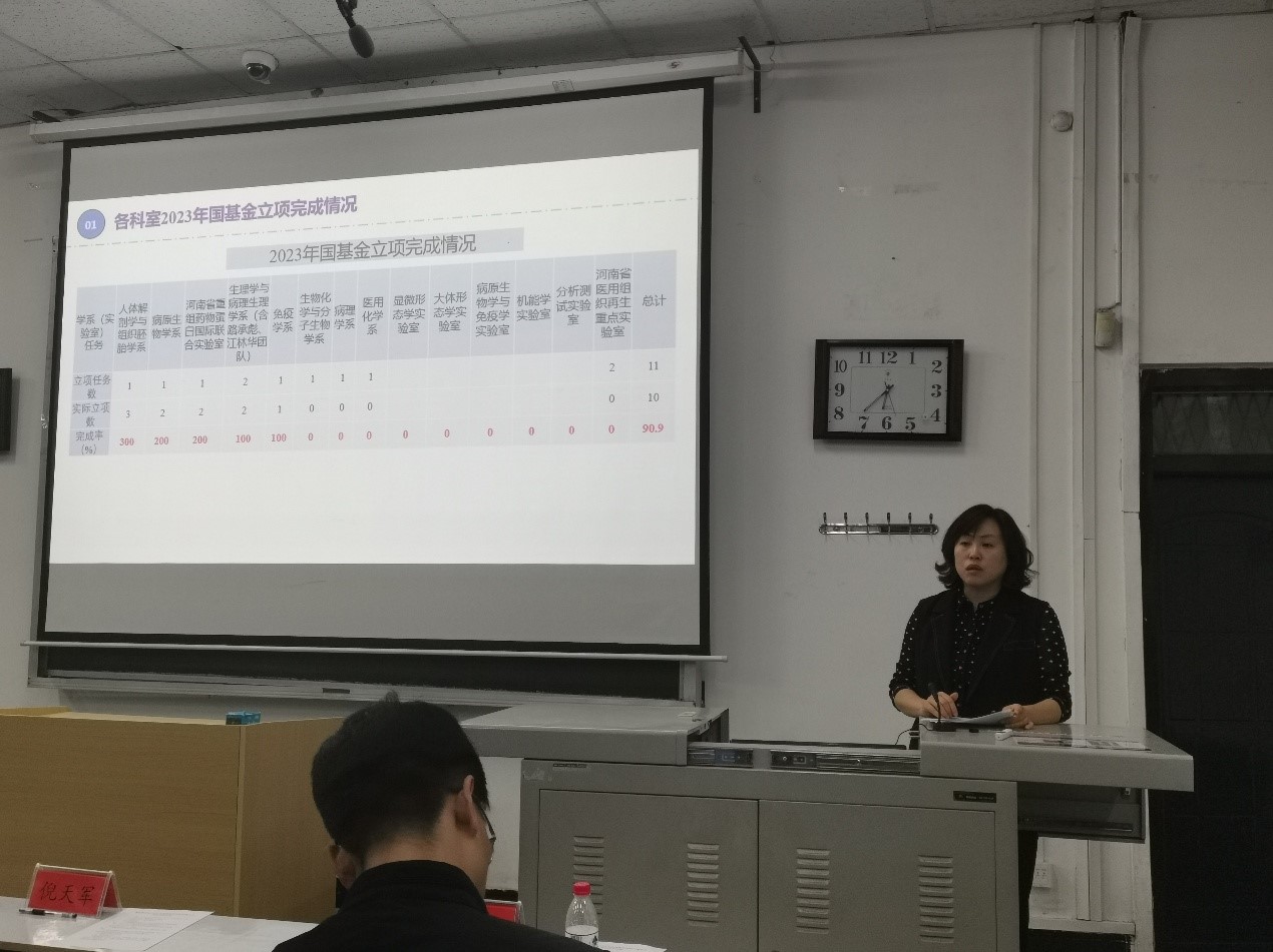 任峰对我院2023年国家自然科学基金取得的成绩给予了充分肯定,同时从学院、科室、个人层面分析了目前存在的问题。她指出,基金申报工作是学院2024年的重点工作,是学院高质量发展的重要支撑;中青年学术英才的引进和培育对于基金的持续获批具有重要意义。针对下一阶段申报工作,她要求:应大力引育青年学术英才,完善优秀教师传帮带团队协作机制;积极引进战略科学家和科技领军人才,凝练科研方向,加强团队建设,稳步推进有组织科研,布局国家自然科学基金区域创新发展联合基金重点支持项目;提高政治站位,做好基金申报的摸底、动员,扎实组织开展基金论证,争取在2024年再创佳绩,推动我院科研水平再上新台阶,为学校“更名大学”“申博增硕”提供有力支撑!