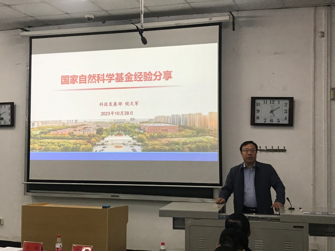 倪天军总结了2023年我校国家自然科学基金申报和立项情况,充分肯定了我院近年来的基金申报工作。他指出,我院的基金工作总体呈现良好发展的趋势,但也存在着一些不足,如资助率偏低、持续主持项目能力偏弱等;同时从不同层面分析了基金改革的趋势、机遇和挑战,并提出了相应的应对措施;强调加强科研团队建设、学术交流对基金申报十分重要,并介绍了学校对2024年度基金申报的具体安排。