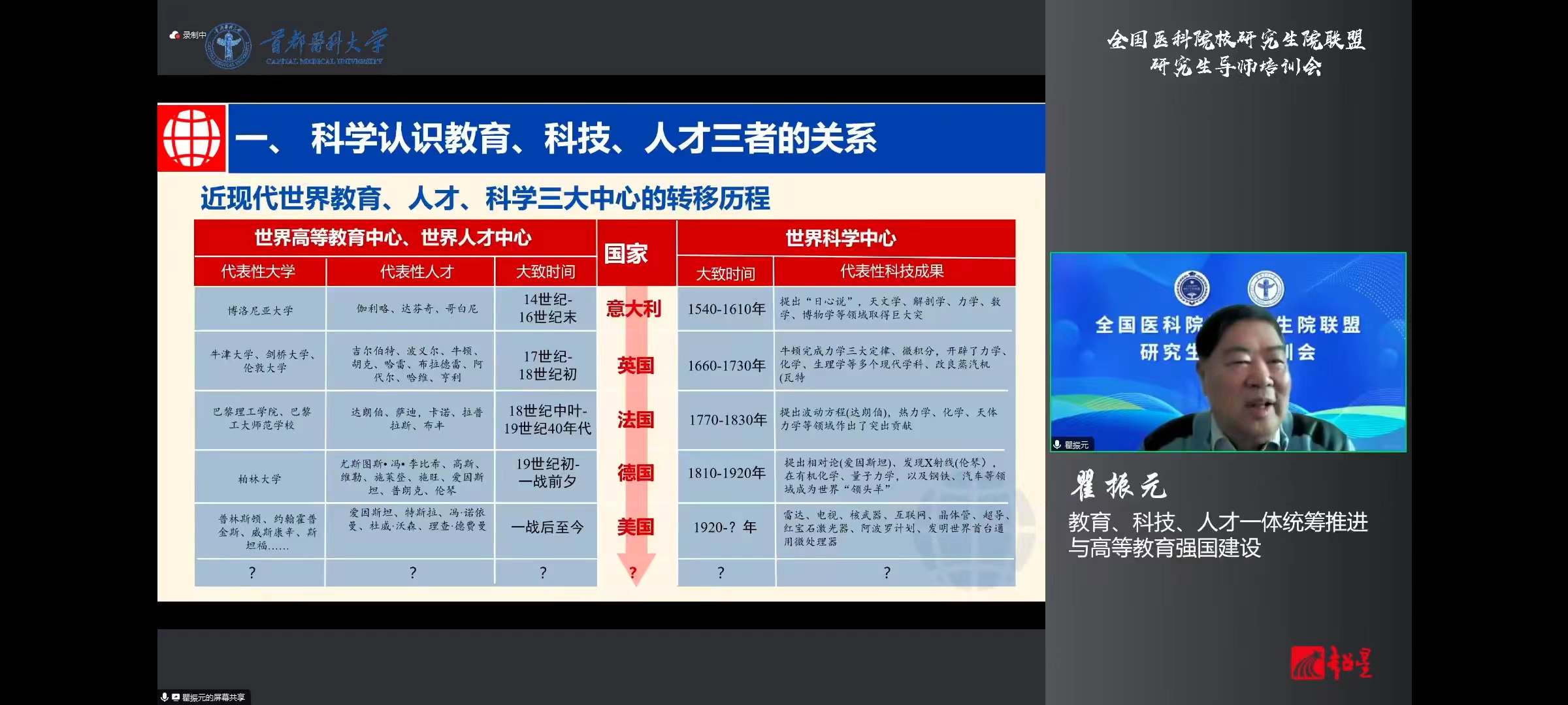 培训会邀请到了国家教育咨询委员会委员瞿振元教授、北京理工大学王战军教授、南方医科大学黄文华教授、首都医科大学杨凤池教授以及重庆医科大学余华荣教授进行了精彩的分享。各位专家还结合许多实际案例和成功经验深入分析导学关系,分享了许多宝贵的经验和做法。