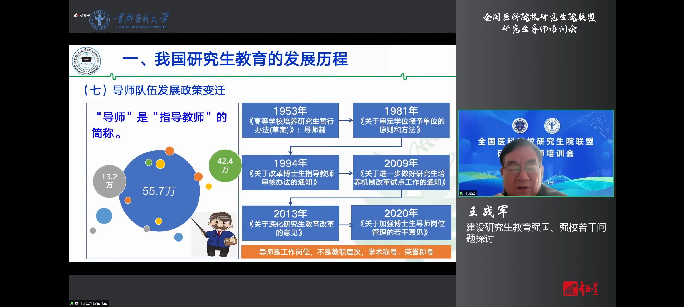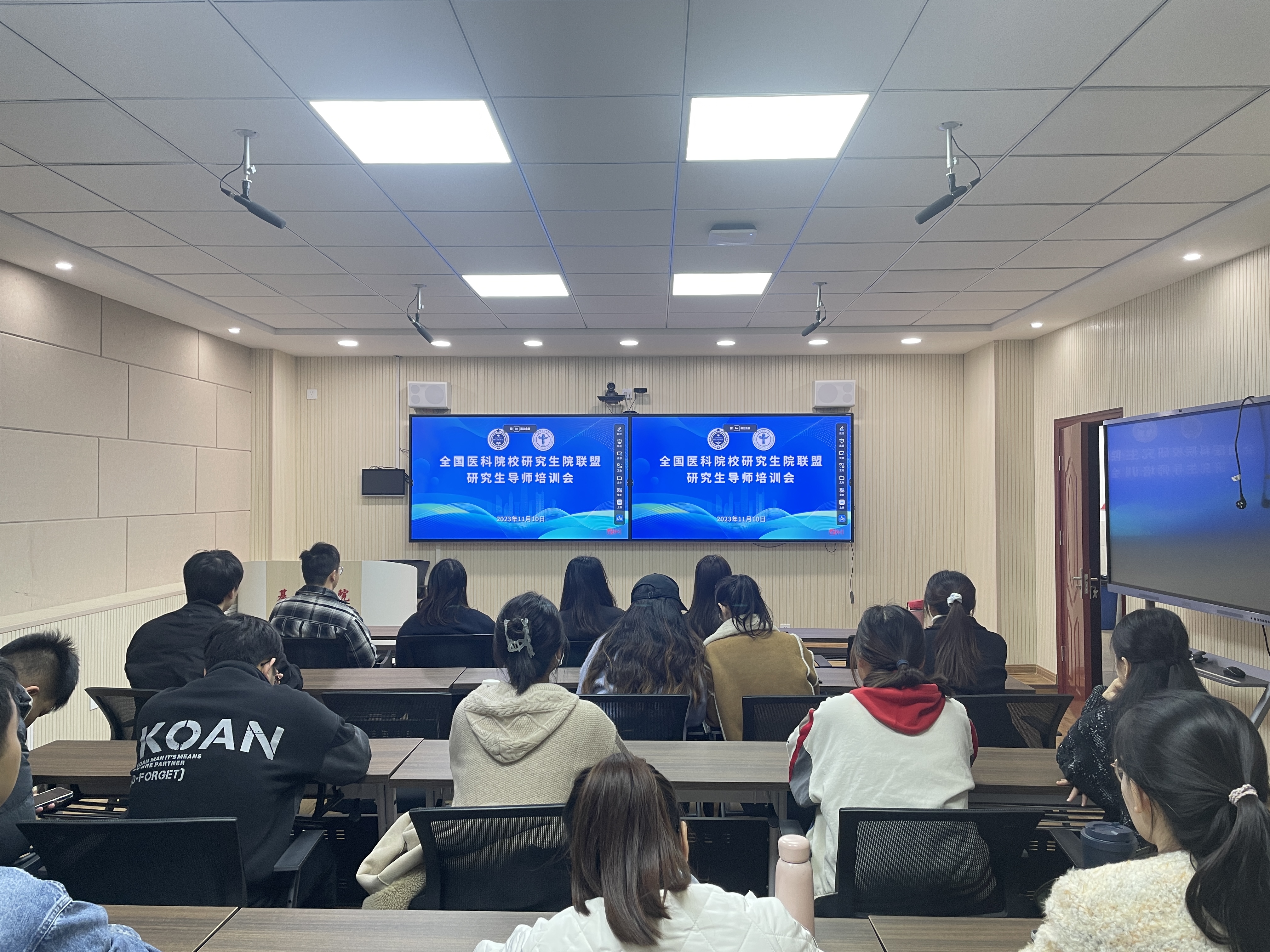 (文/图 杨妍 于莉莉)为进一步落实习近平总书记关于研究生教育的重要指示、落实全国研究生教育大会精神,加强导师队伍建设,提升导师队伍水平,全国医科院校研究生院联盟于2023年11月10日举办研究生导师培训会,我院组织学院研究生导师共80余人线上线下进行了观看。
