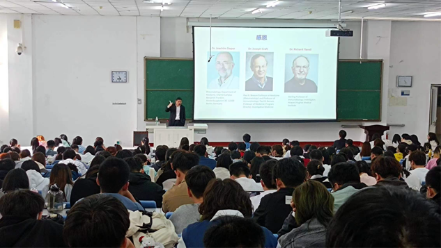 2024年4月7日16时,基础医学院“名师面对面”第一期在博学楼D2教室组织开展,基础医学院特聘教授、国家“杰青”、教育部“长江学者”、暨南大学生物医学转化研究院院长尹芝南为临床医学专业本科生带来了题为“怀感恩之心,走自由探索之路”的授课,基础医学院500余名师生到场聆听。