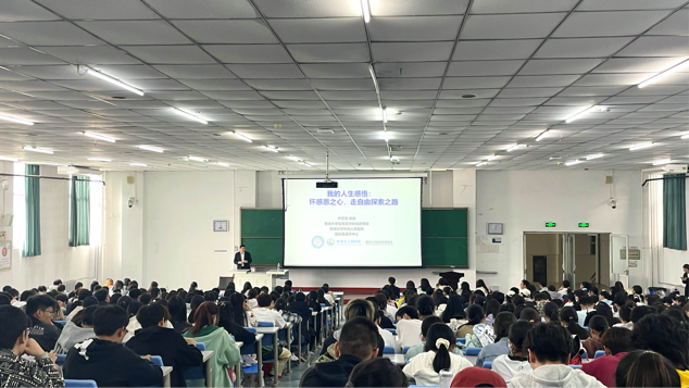 尹教授通过分享自己在科研求学途中所遇到的良师益友和珍贵的机会,使我们明白了感恩、选择、求索和奉献的重要性。随后,尹教授用平实幽默的语言分享了他的人生感悟,并用朴实的话语“只有常怀感恩之心的人,才能干出一番事业”鼓励同学们学有所成时要用所学知识主动帮助别人,回馈社会。讲座过程中,尹教授循循善诱,引人入胜,用自身的科研经历激励同学们要勇于创新,迈向新的可能,同学们也热情高涨,沉浸其中,频频爆发出热烈的掌声。