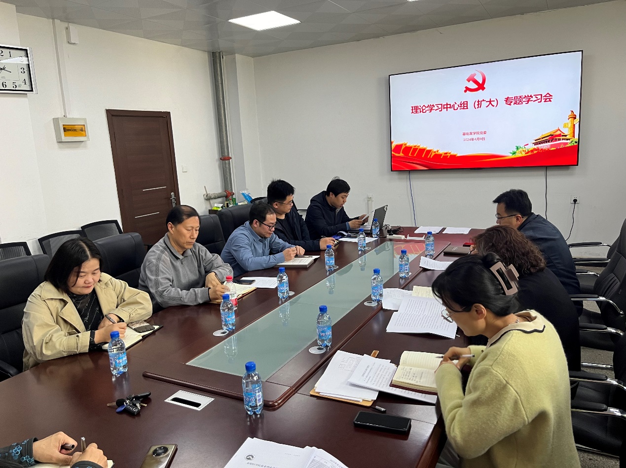 (文/吴文斌 图/张琳)4月9日下午,学院党委在求真楼东配楼三楼331会议室召开理论学习中心组(扩大)专题学习研讨会议。基础医学院党委书记任峰、副书记白婕,基础医学院副院长熊熙文、副处级组织员李照勇、副处级教学督导员千智斌及全体行政科室负责人参加了会议。会议由任峰主持。
