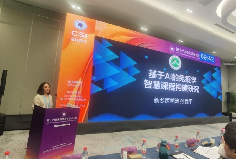2024年10月24日至27日,中国免疫学会第十六届全国免疫学学术大会在杭州举行,来自全国各地医学院校的教师和科研人员齐聚一堂,展示学术成果、交流学术思想、创新学术观点。我校免疫学系孙爱平副教授代表教学团队在教学分会场做了“基于AI的免疫学智慧课程构建研究”的报告,在现场引起了广泛关注和热烈讨论。