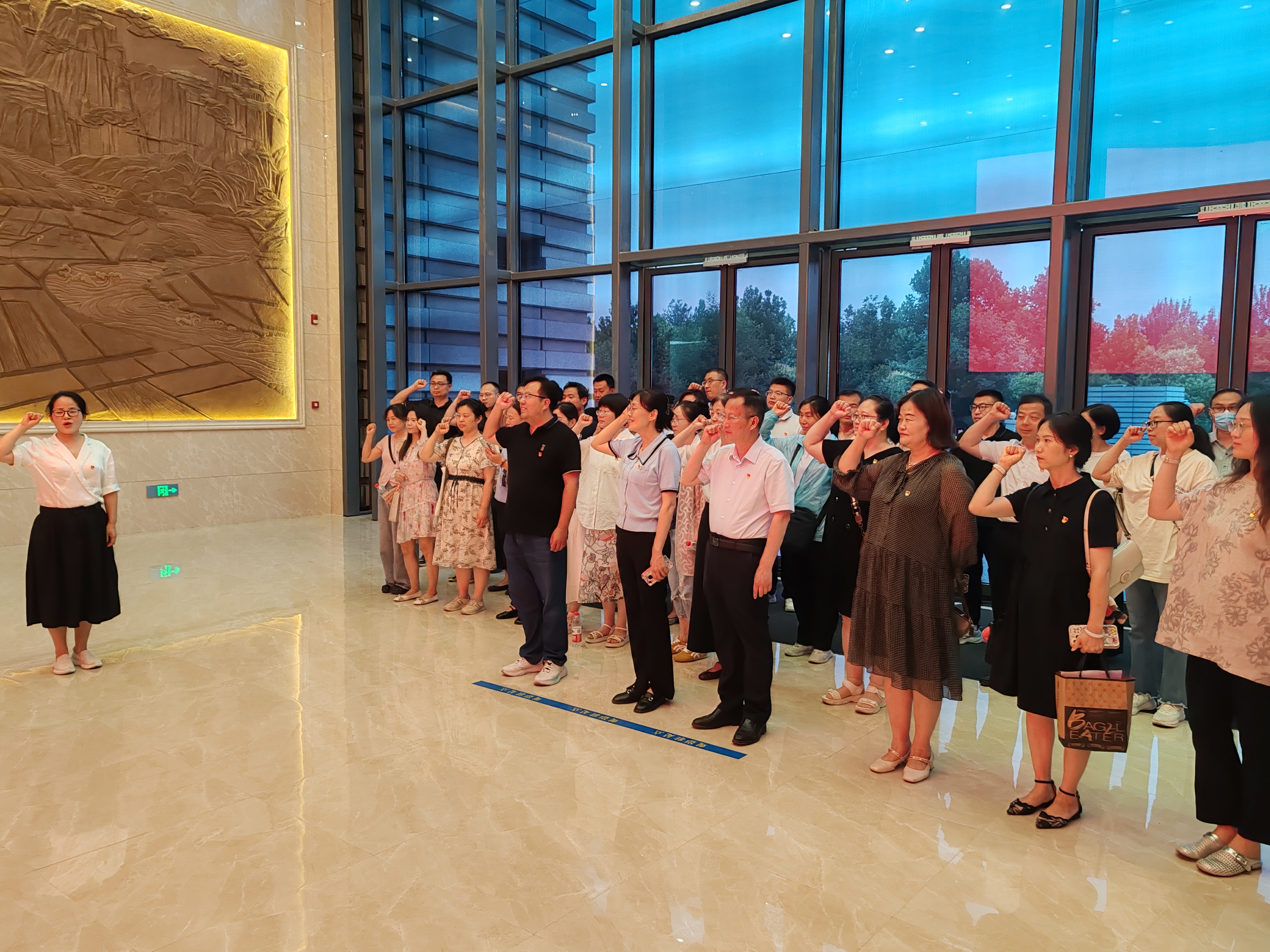 参观结束后,全体党员在党旗前庄严列队,重温入党誓词。铿锵有力的誓言响彻大厅,字字千钧,既是对入党初心的庄严回溯,也是对廉洁从政的郑重承诺,更是对肩负使命的坚定担当。