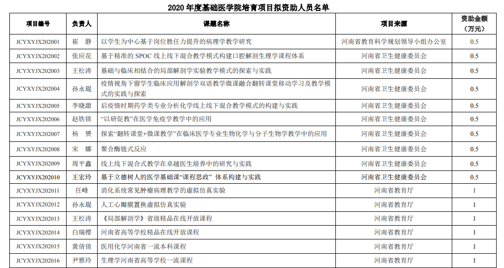 根据《华亿在线手机版(大中国区)基础医学院教学科研项目培育办法(试行)》文件精神,经过集中申报,组织评审,评选出23项教学、科研培育项目,特公示如下,公示期为2021年1月26日--2021年1月29日。