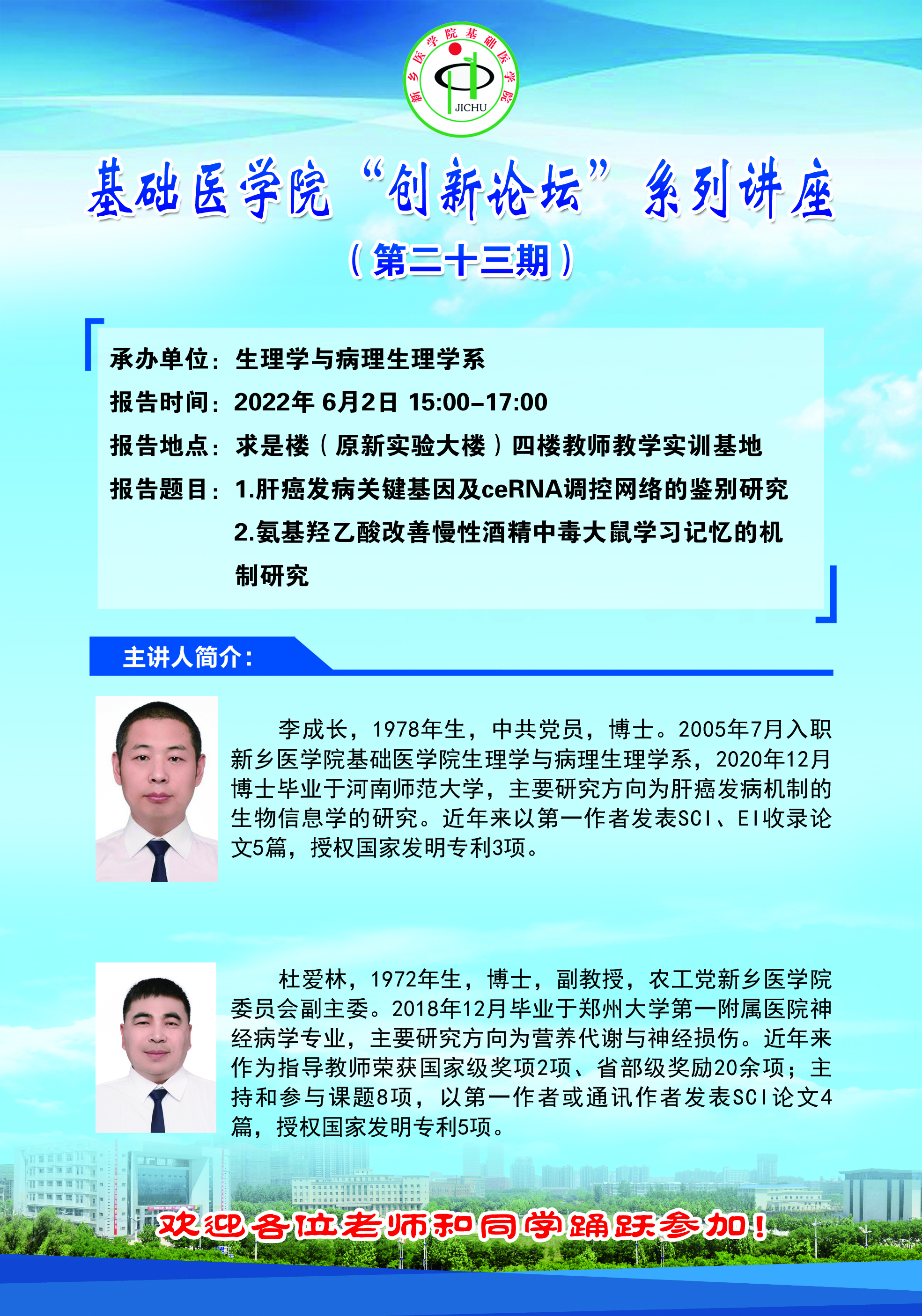 基础医学院“创新论坛”系列讲座(第二十三期)
