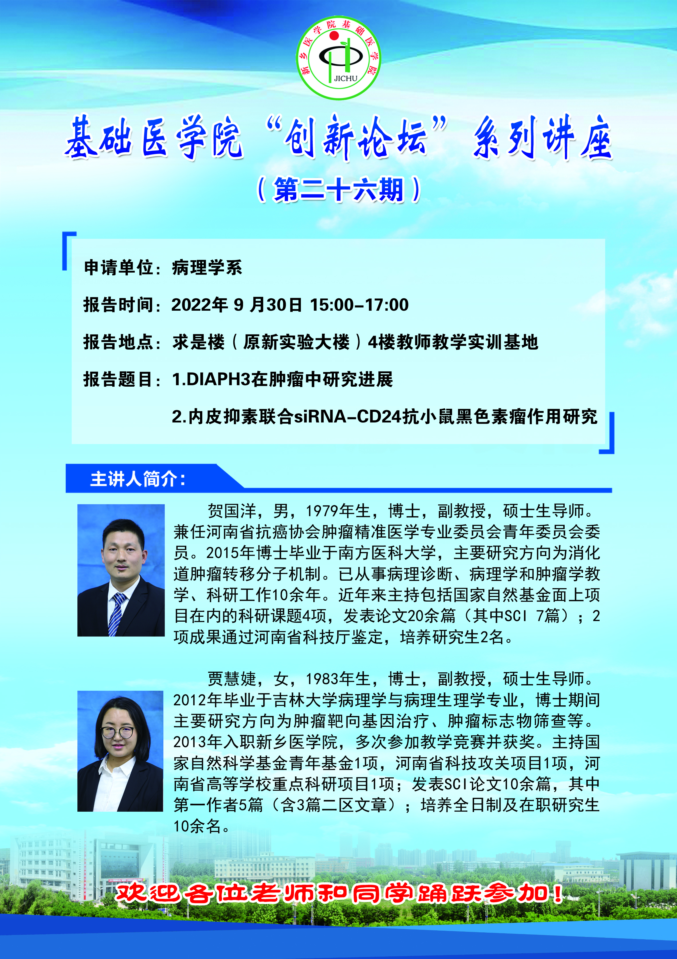 基础医学院“创新论坛”系列讲座(第二十六期)